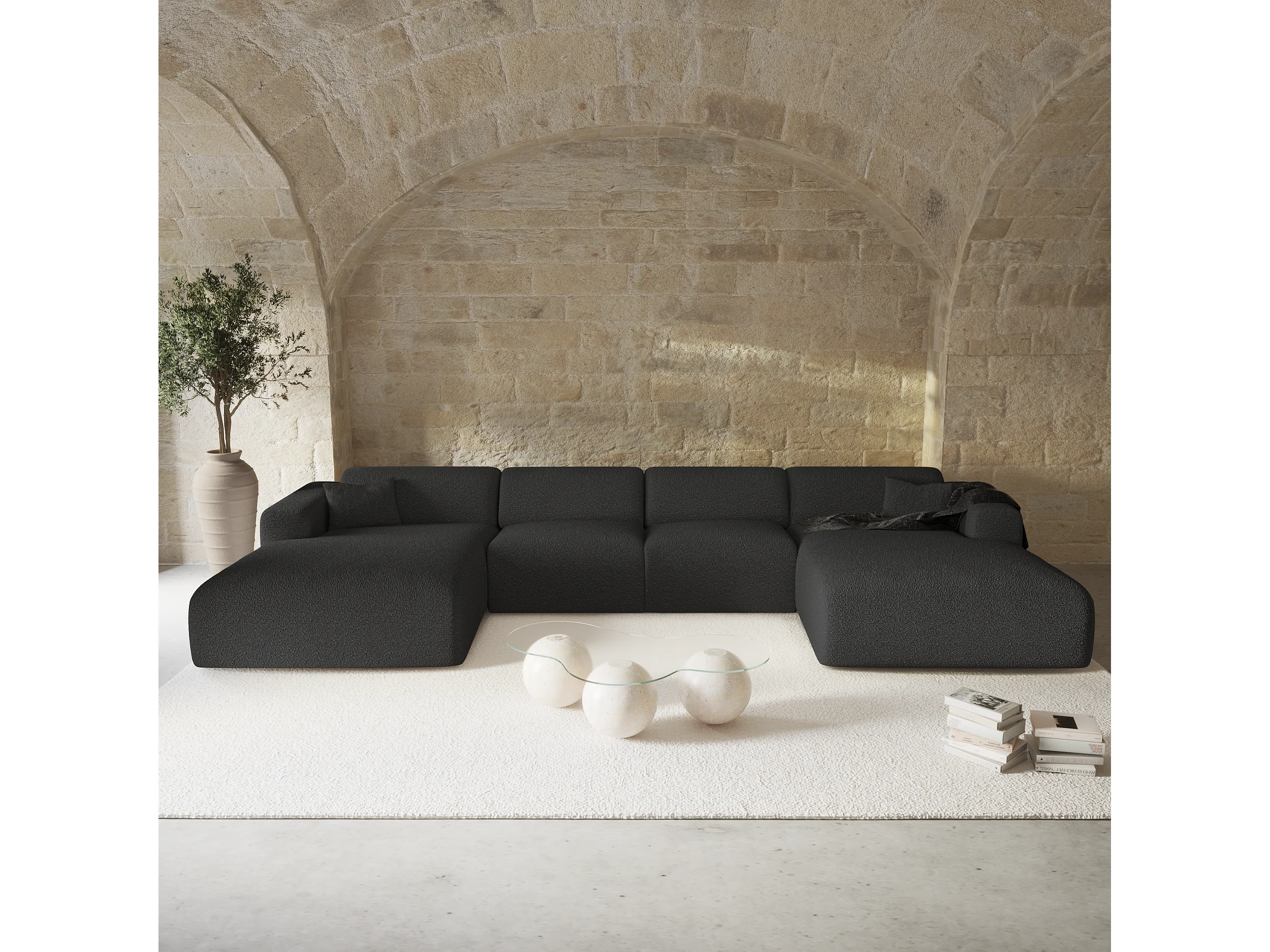 Canapé panoramique 7 places symétrique bouclette anthracite foncé MYRA