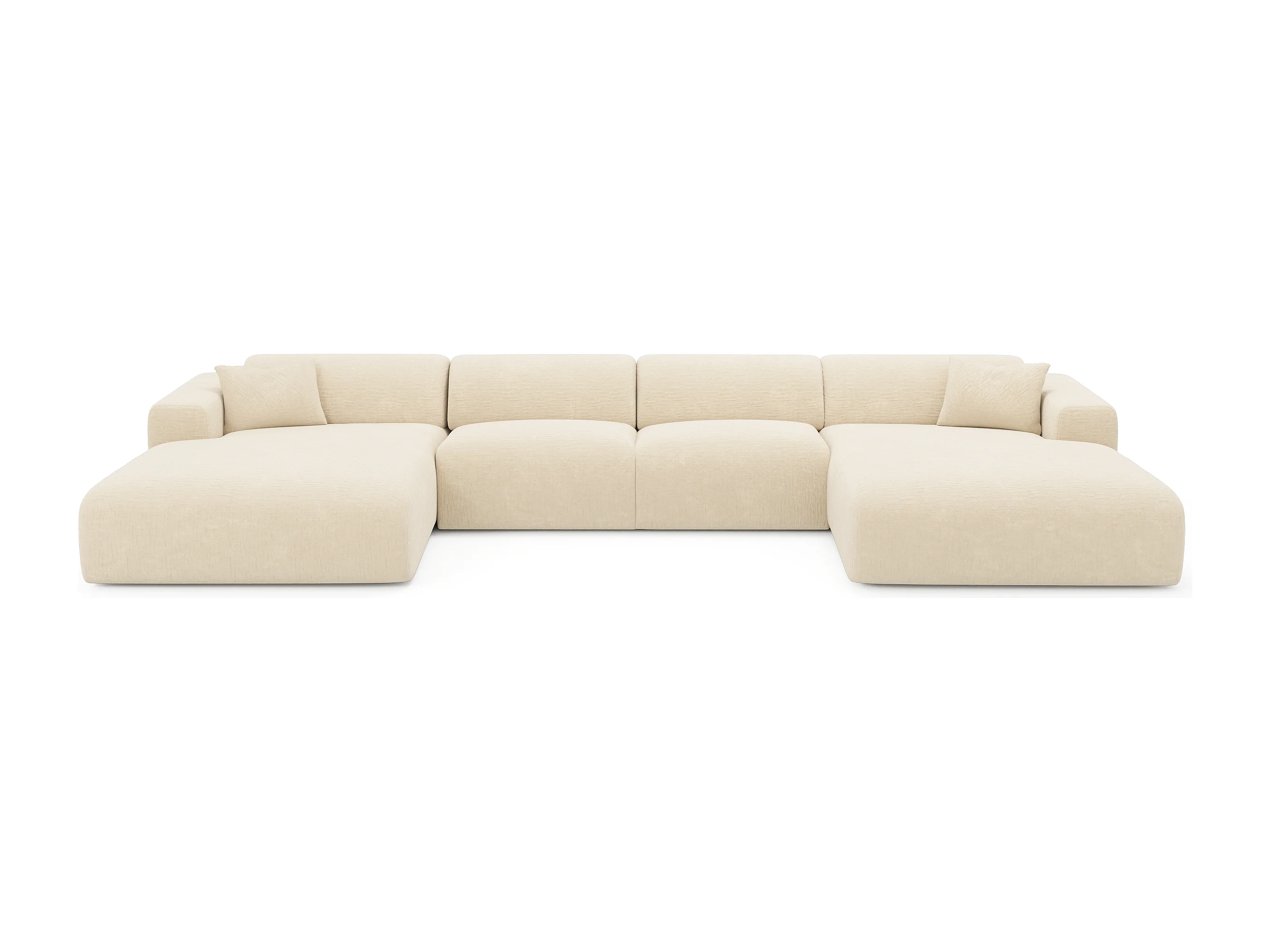 Canapé panoramique 7 places symétrique tissu velours à motifs crème MYRA