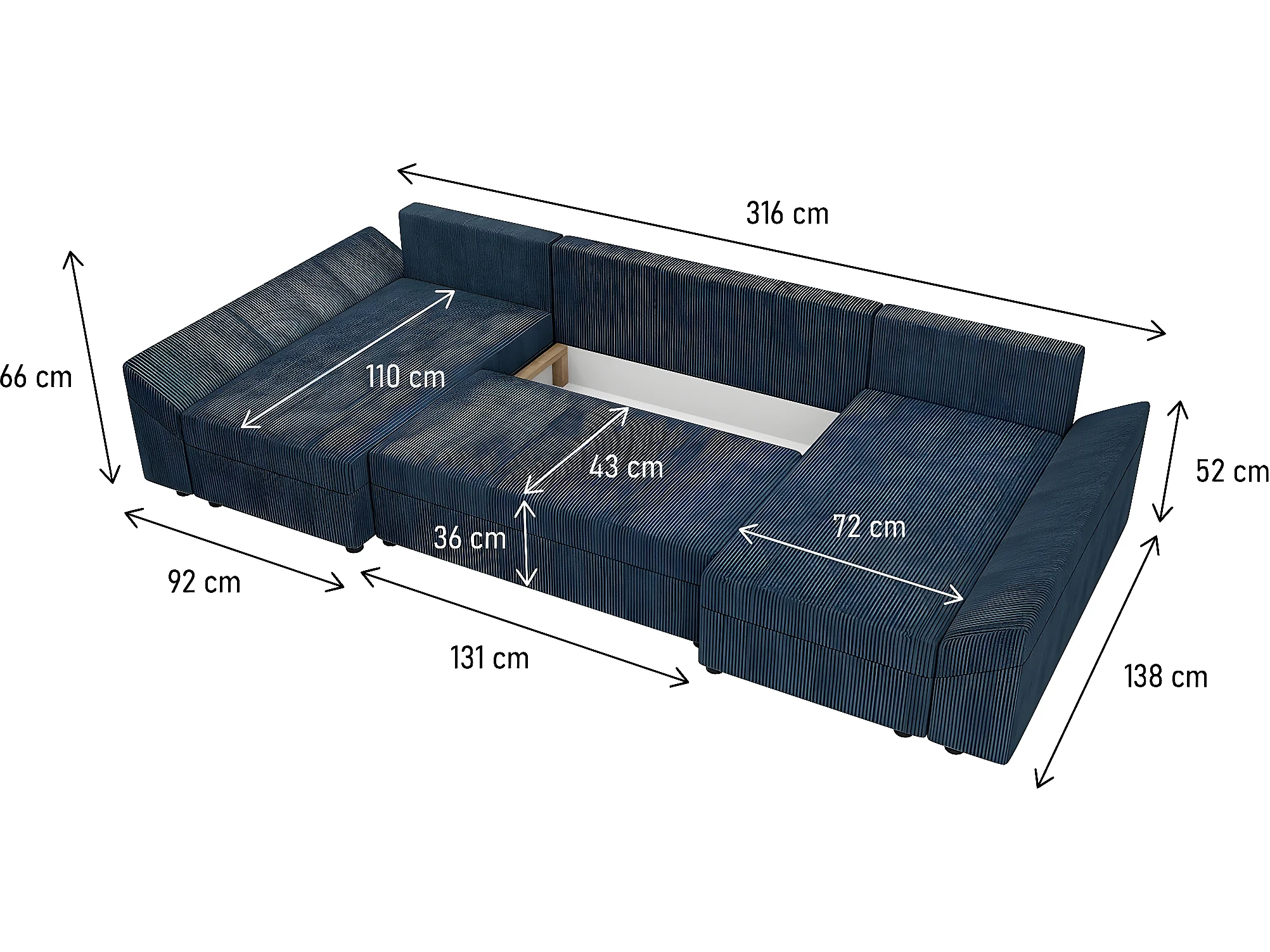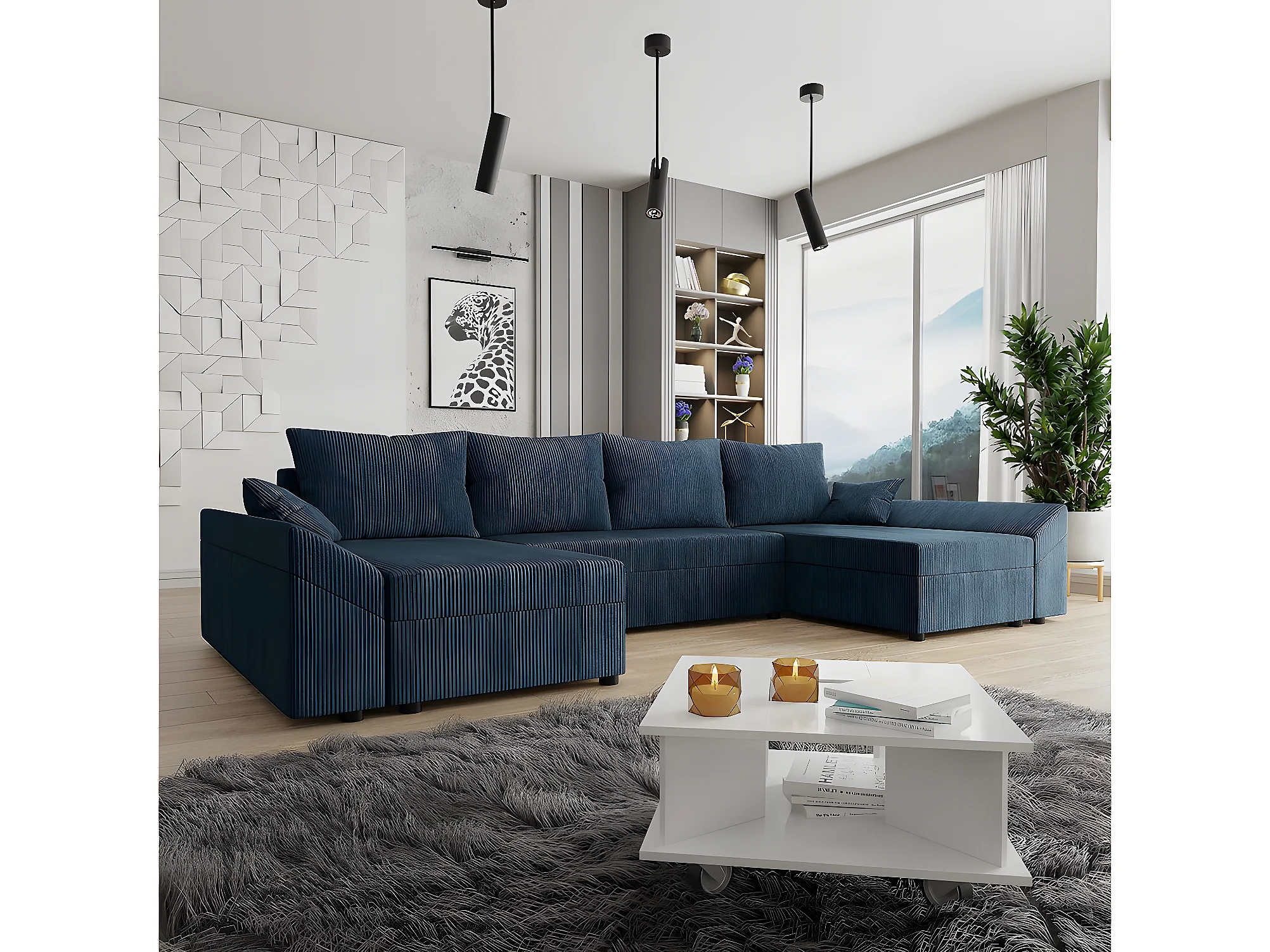 Canapé panoramique "Vaugirard" en velours côtelé - 5 places - Bleu