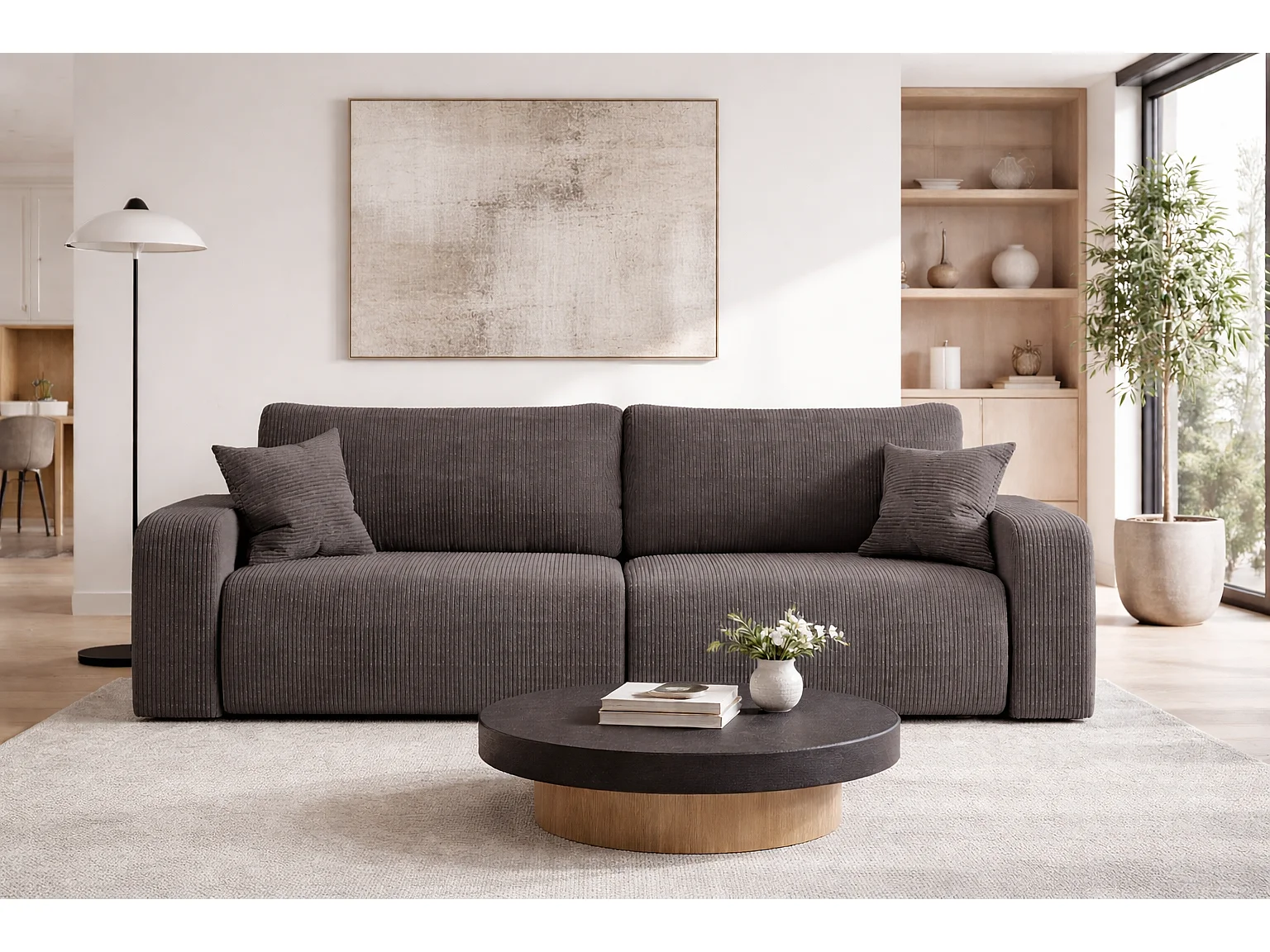 Canapé PIANIOO convertible avec coffre de rangement – Gris élégant, idéal pour le salon, confort maximal, qualité VINOTTI