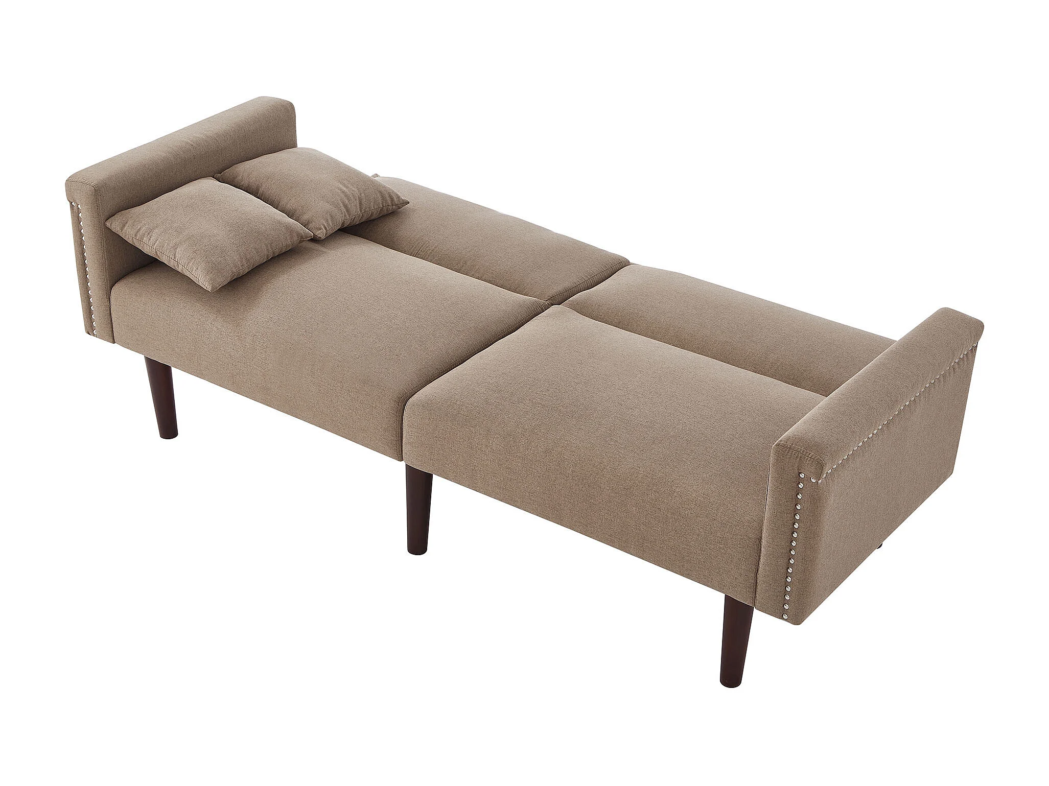 Canapé Pieds Bois Haute Capacité Tissu Coton Lin Assise Confort Dossier Réglable Brun Antique (Sans matelas)