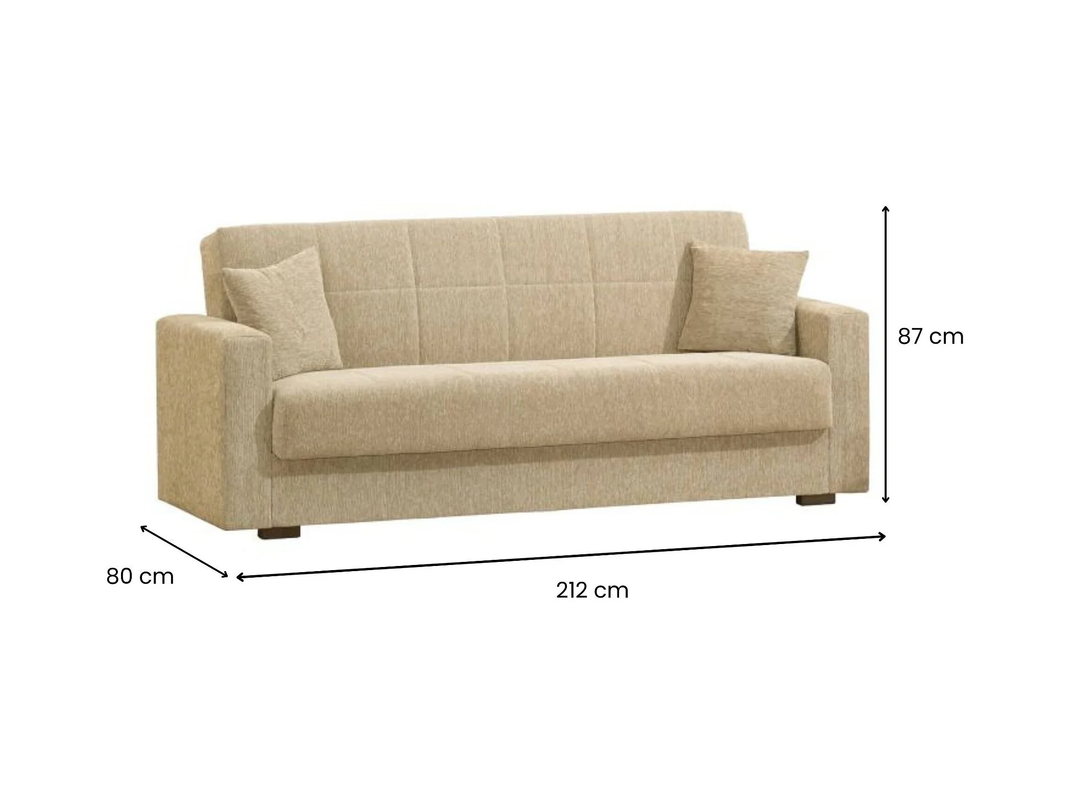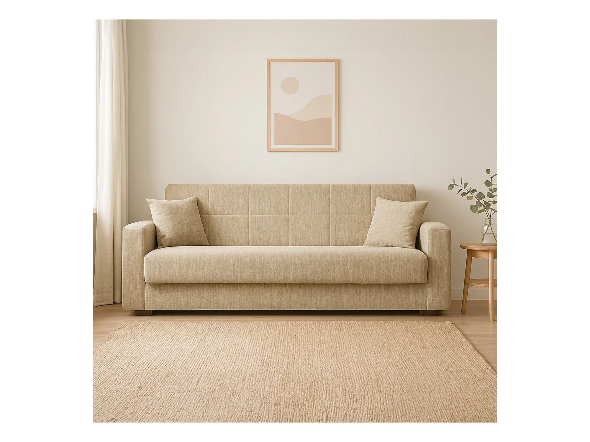 Canapé Dlinette, Canapé conteneur 3 places linéaire, Canapé de salon en tissu rembourré avec ouverture clic-clac, 212x80h87 cm, Bleu