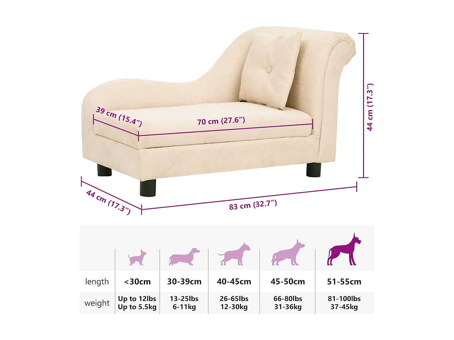 Canapé pour chien avec oreiller Crème 83x44x44 cm Peluche
