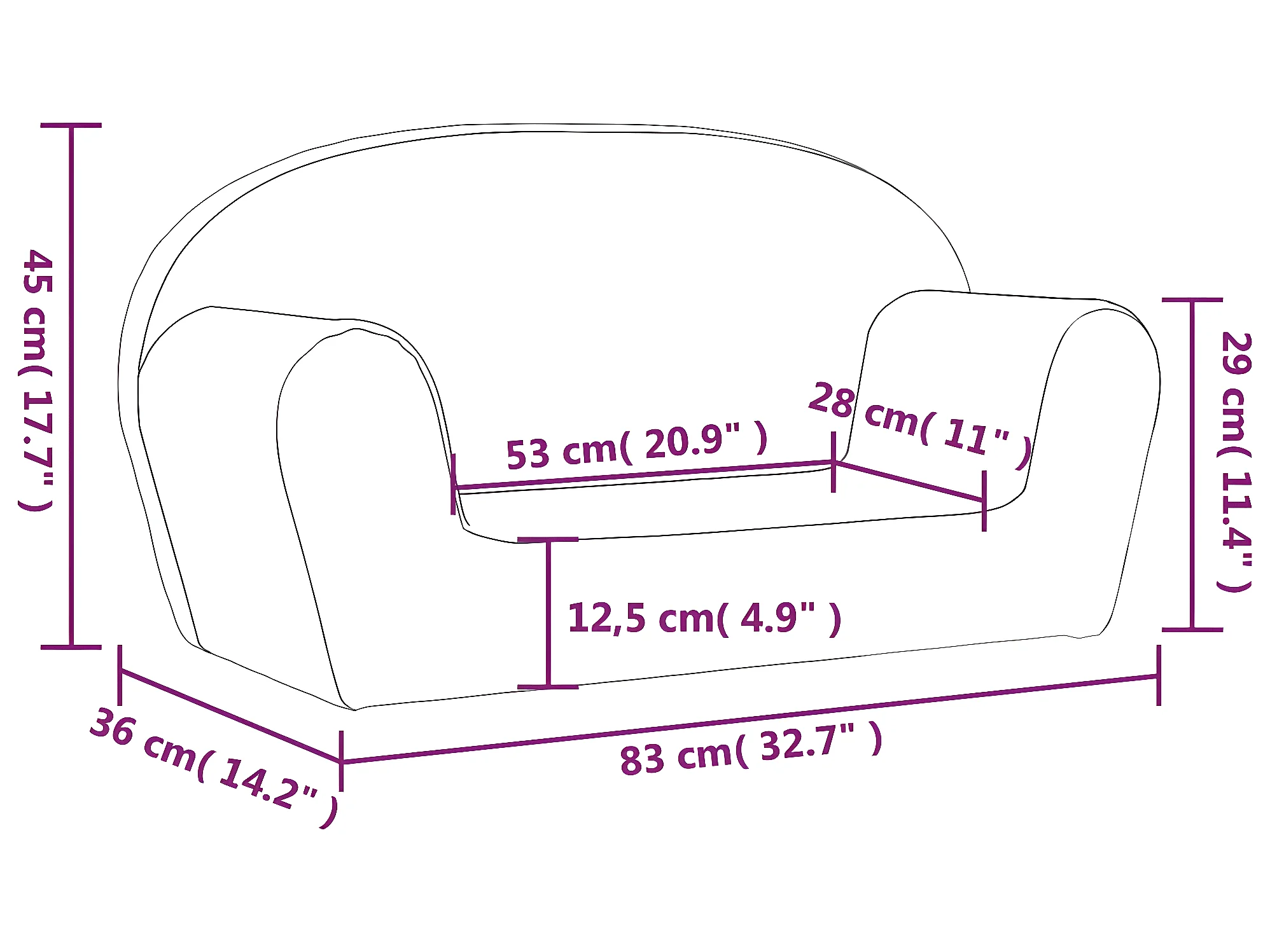 Canapé pour enfants à 2 places Anthracite Peluche douce