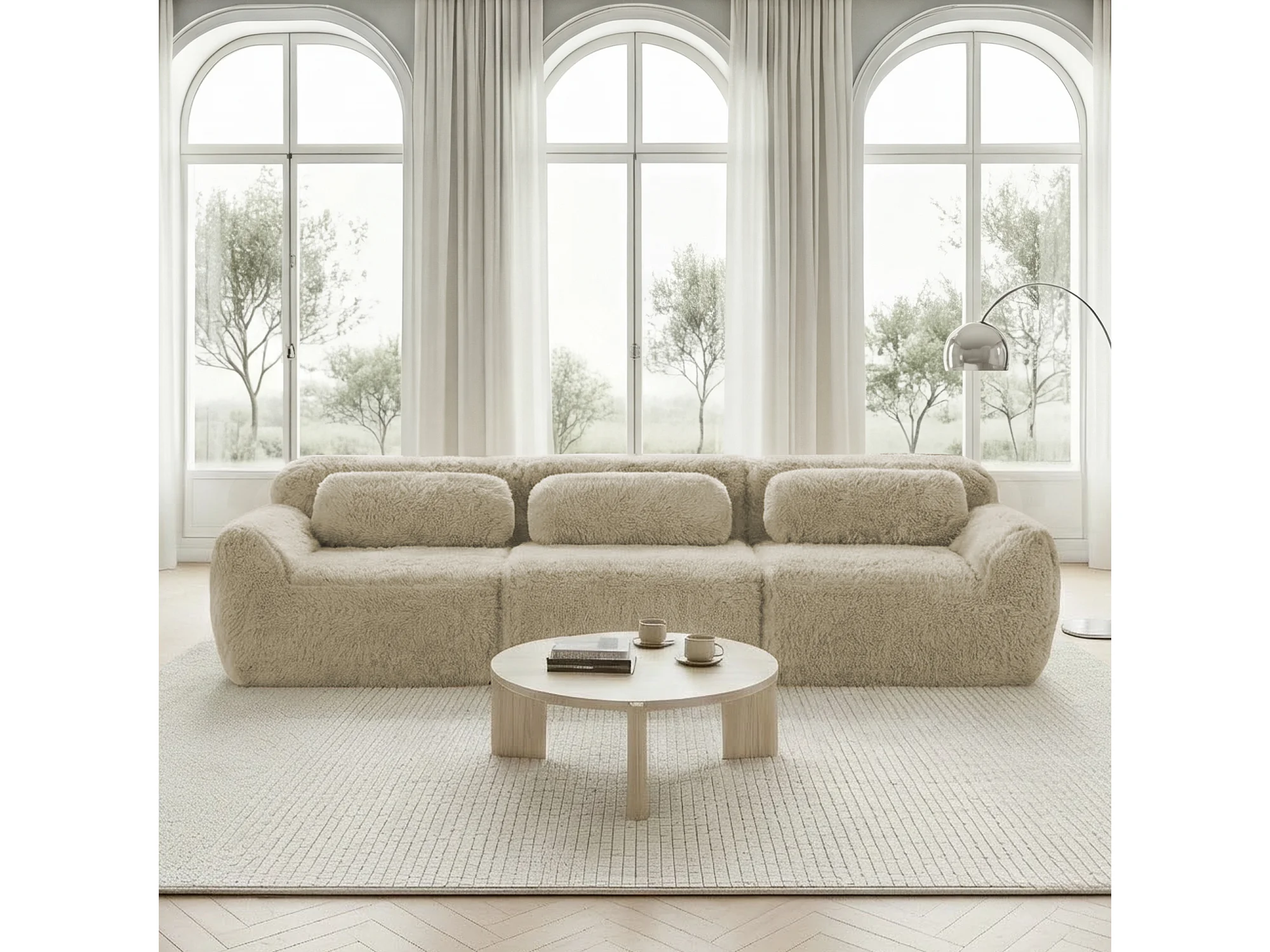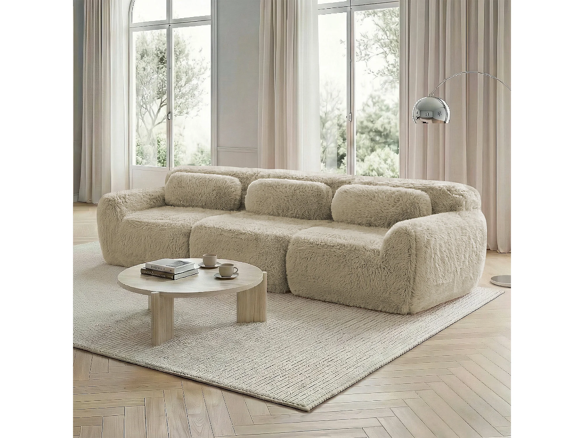 Canapé profond 3 places modulable en tissu peluche premium avec coussins, sans montage – Coloris kaki clair