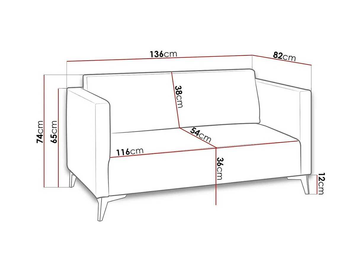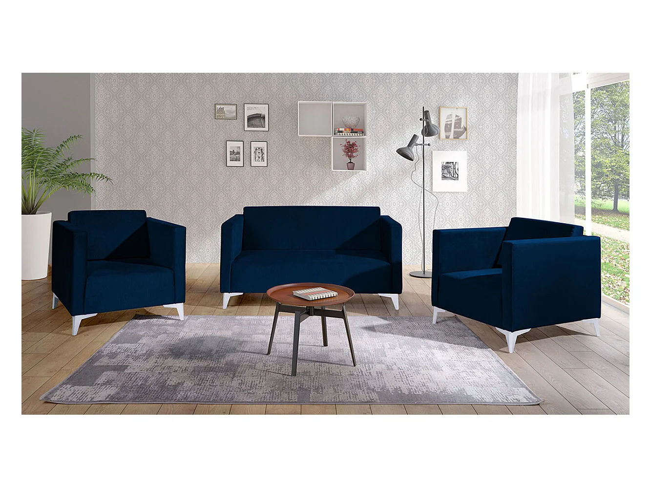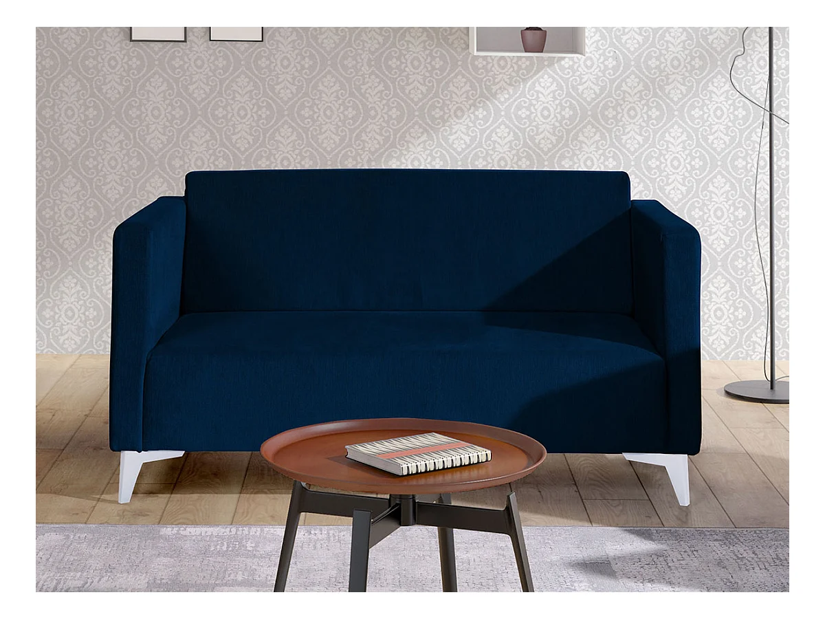 Canapé Virmore 101, Bleu, 136x82x74cm, Tapisserie, Pieds: Plastique