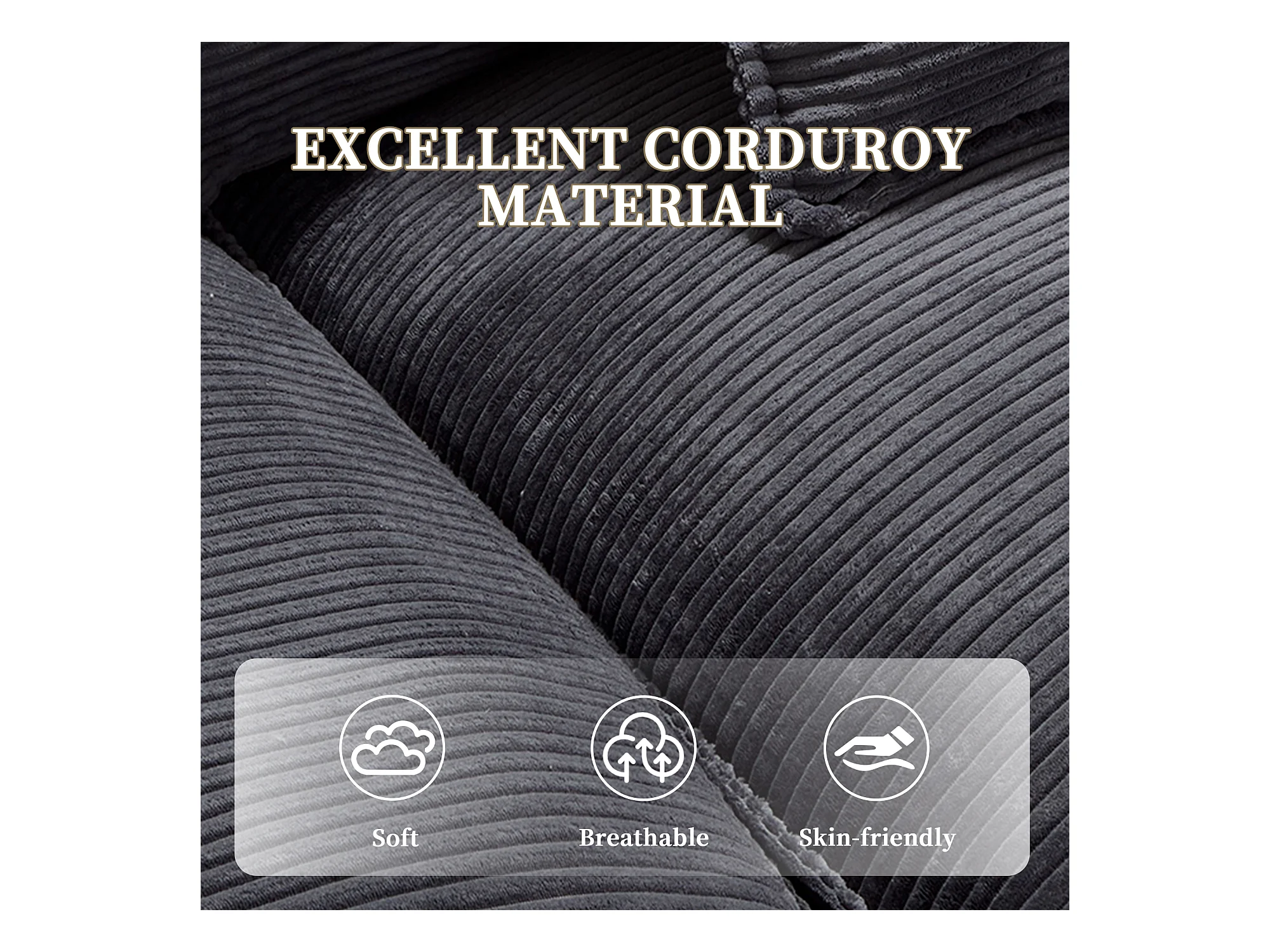 Canapé fixe 2 places en velours gris anthracite - Double assise et 2 coussins inclus - Conçu pour le salon et le sommeil confortable