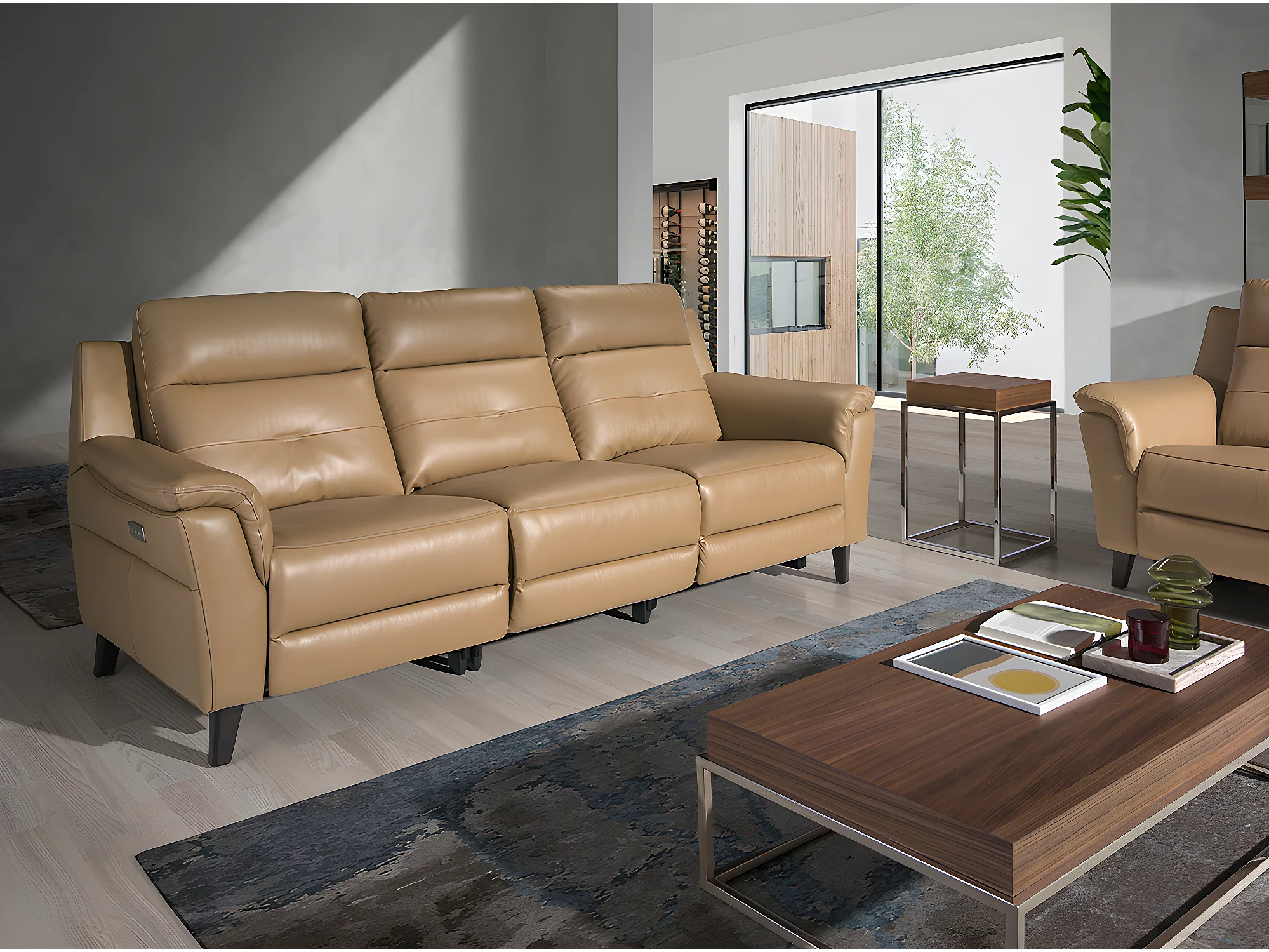 Canapé relax 3 places en cuir et wengé ANGEL CERDA