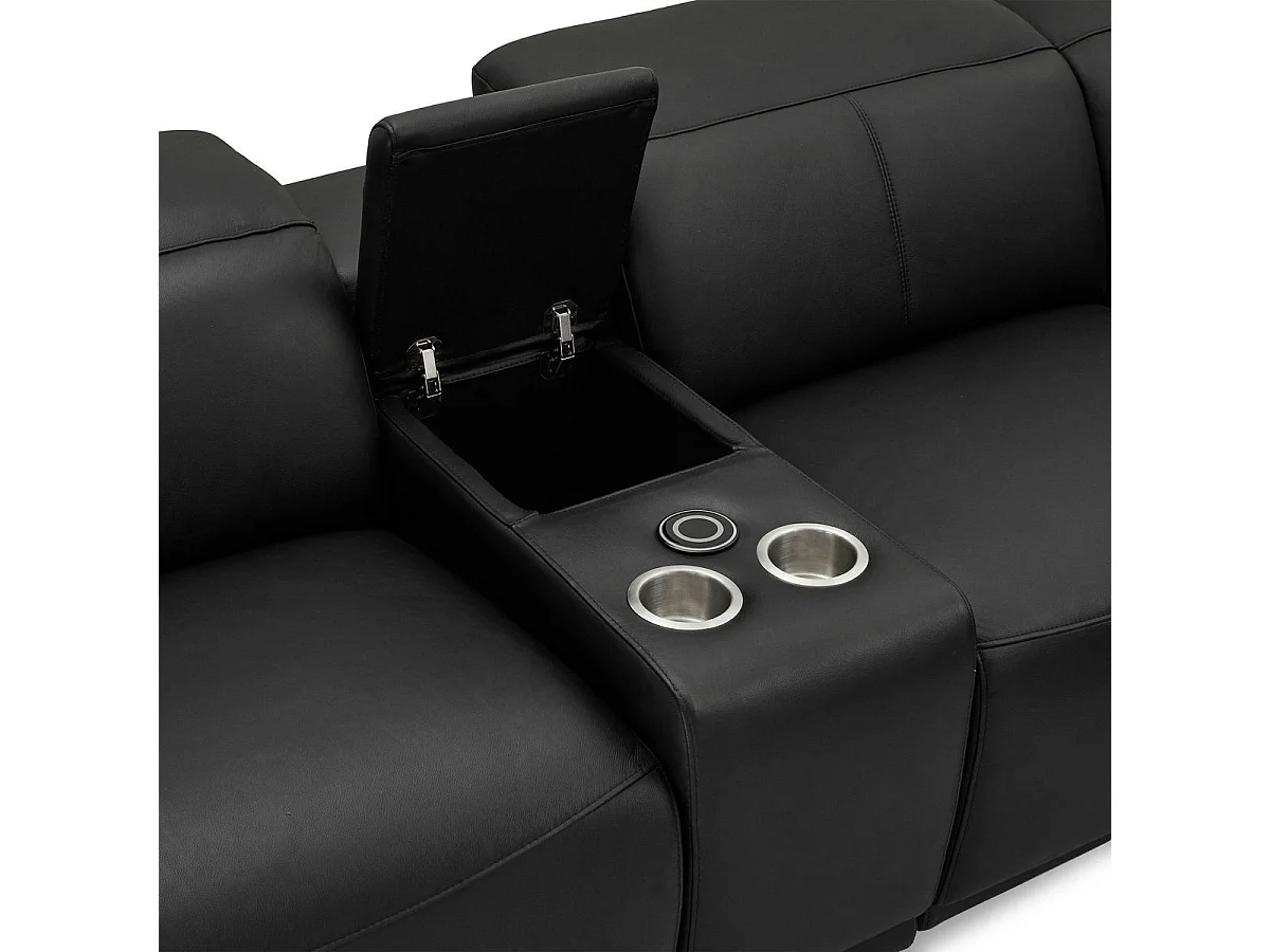 Canapé relax électrique Alexa - 2 places - Cuir - Noir