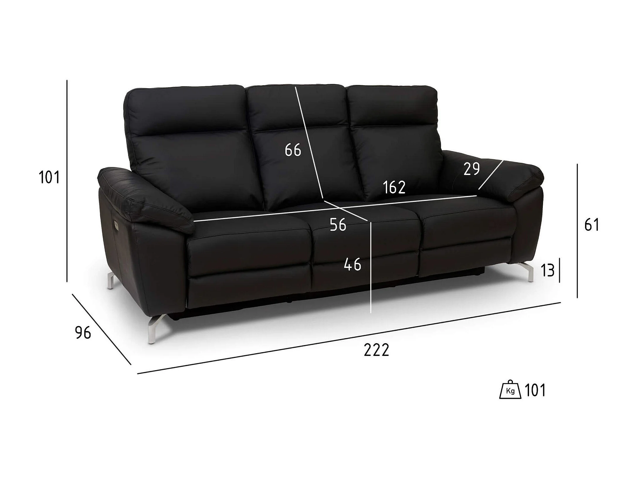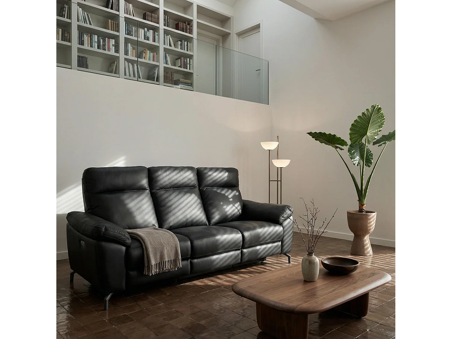 Canapé relax électrique Selesta - 3 places - Cuir - Noir
