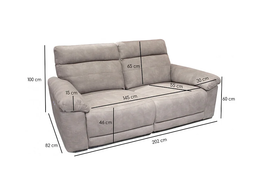 Canapé relaxation 2.5 places motorisé en tissu suédine beige - CLARA