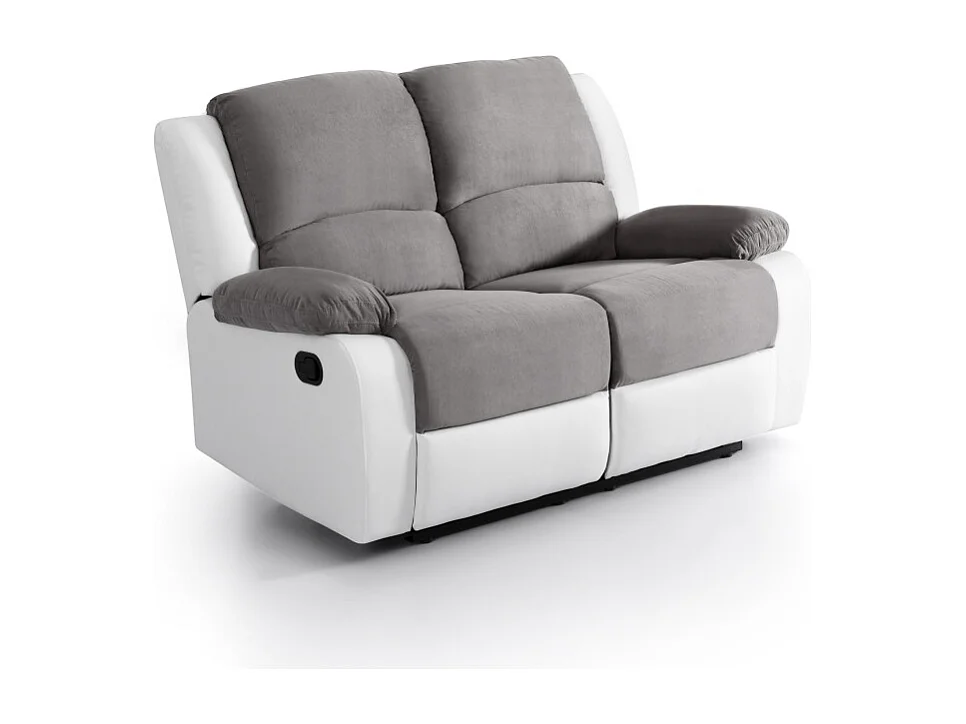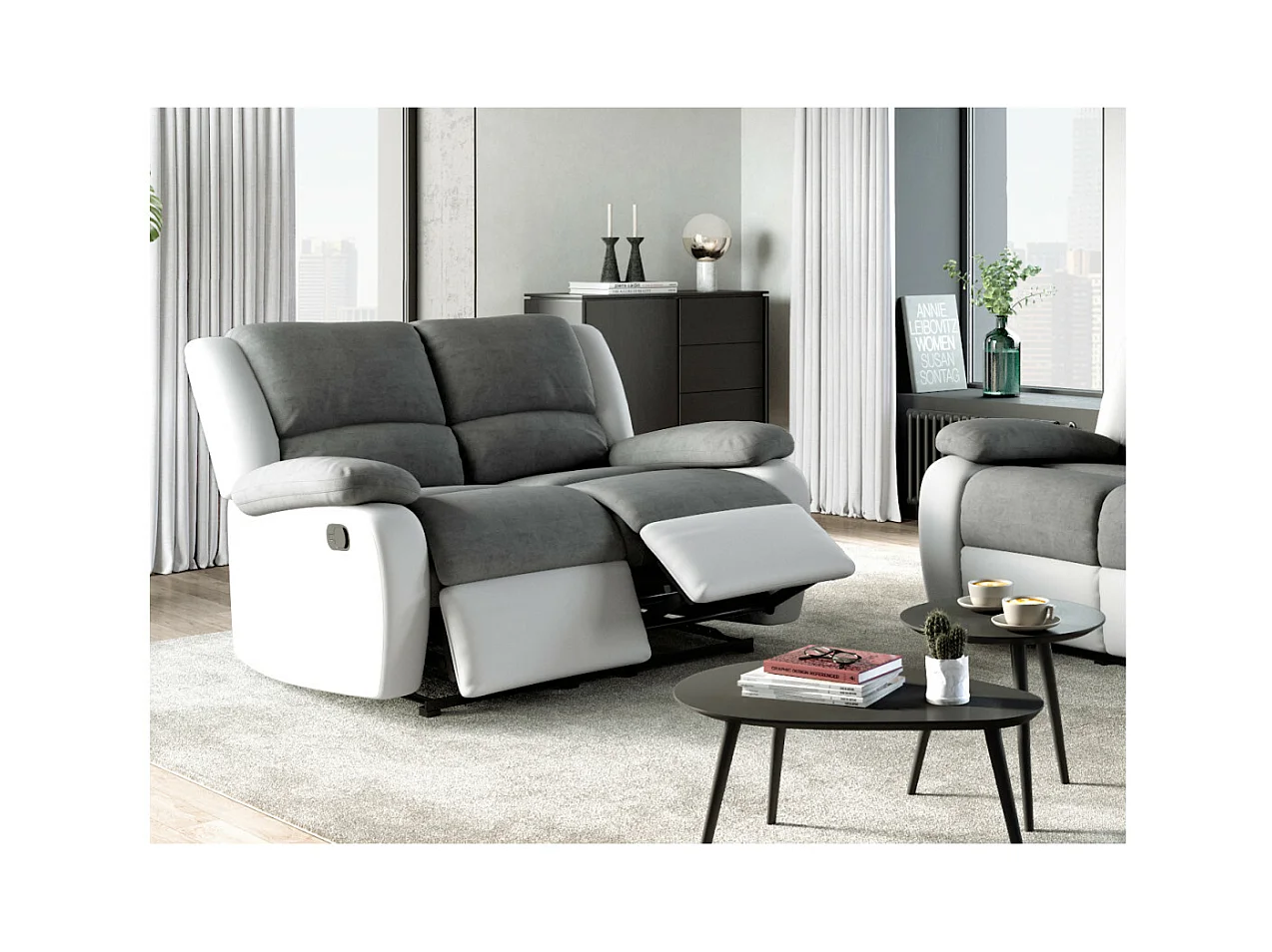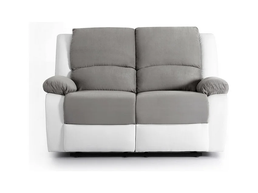 Canapé Relaxation 2 places Microfibre et Simili Léo - Blanc et gris - L143 x 93 x 96cm - Loungitude