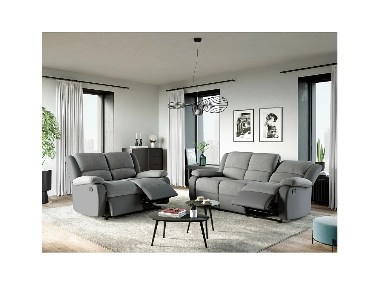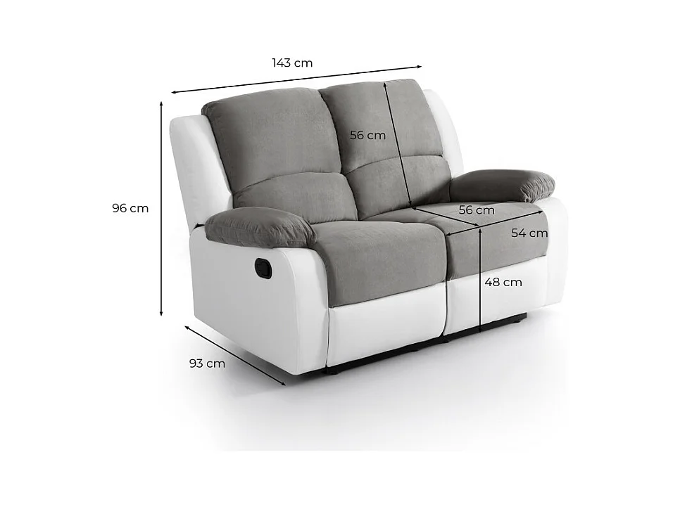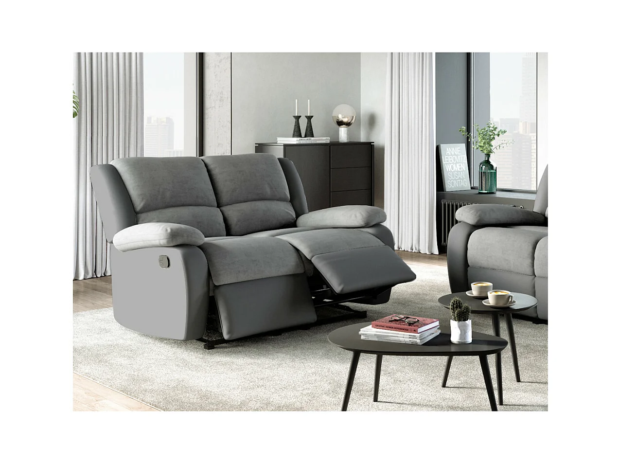 Canapé Relaxation 2 places Microfibre et Simili Léo - Gris - L143 x 93 x 96cm - Loungitude