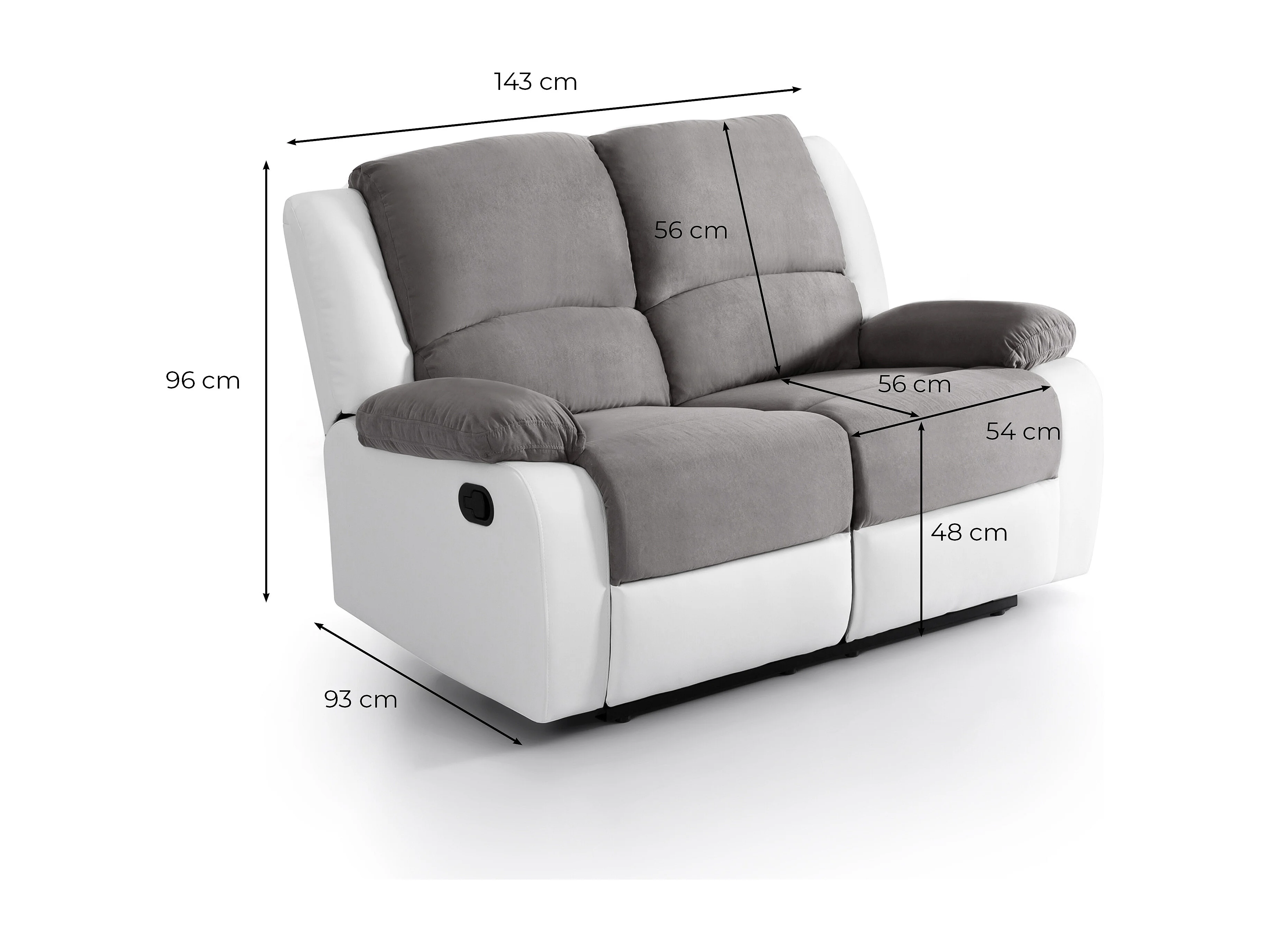 Canapé Relaxation 2 places Microfibre et Simili Léo - Gris et Noir - L143 x 93 x 96cm - Loungitude