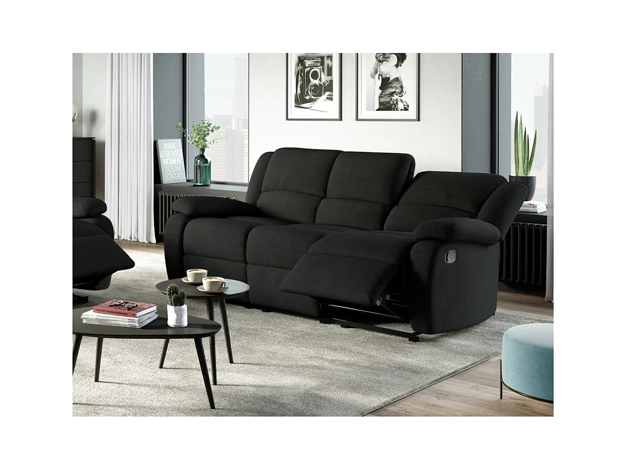 Canapé Relaxation 3 places Microfibre Léo - Noir - L193 x 93 x 96cm - Loungitude