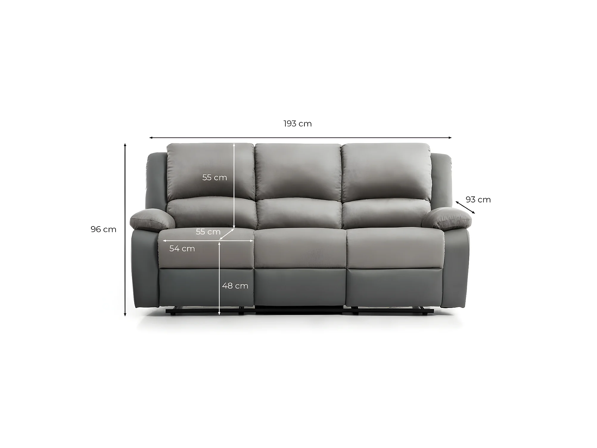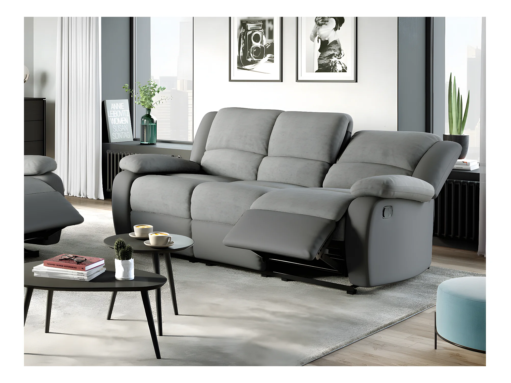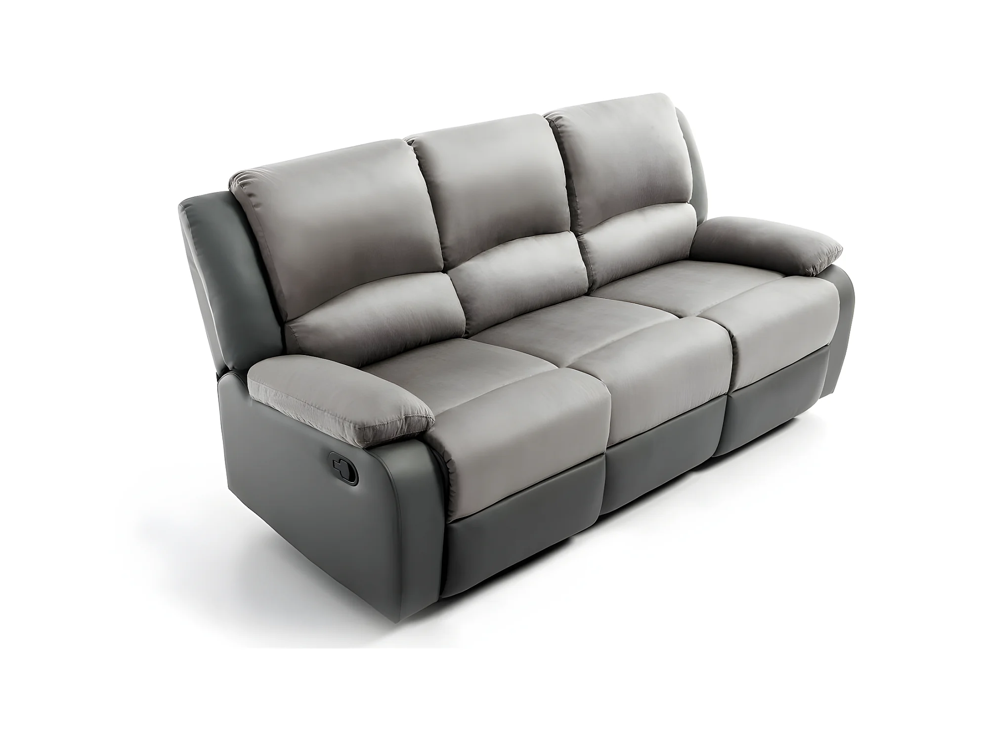 Canapé Relaxation 3 places Microfibre et Simili Léo - Gris - L193 x 93 x 96cm - Loungitude