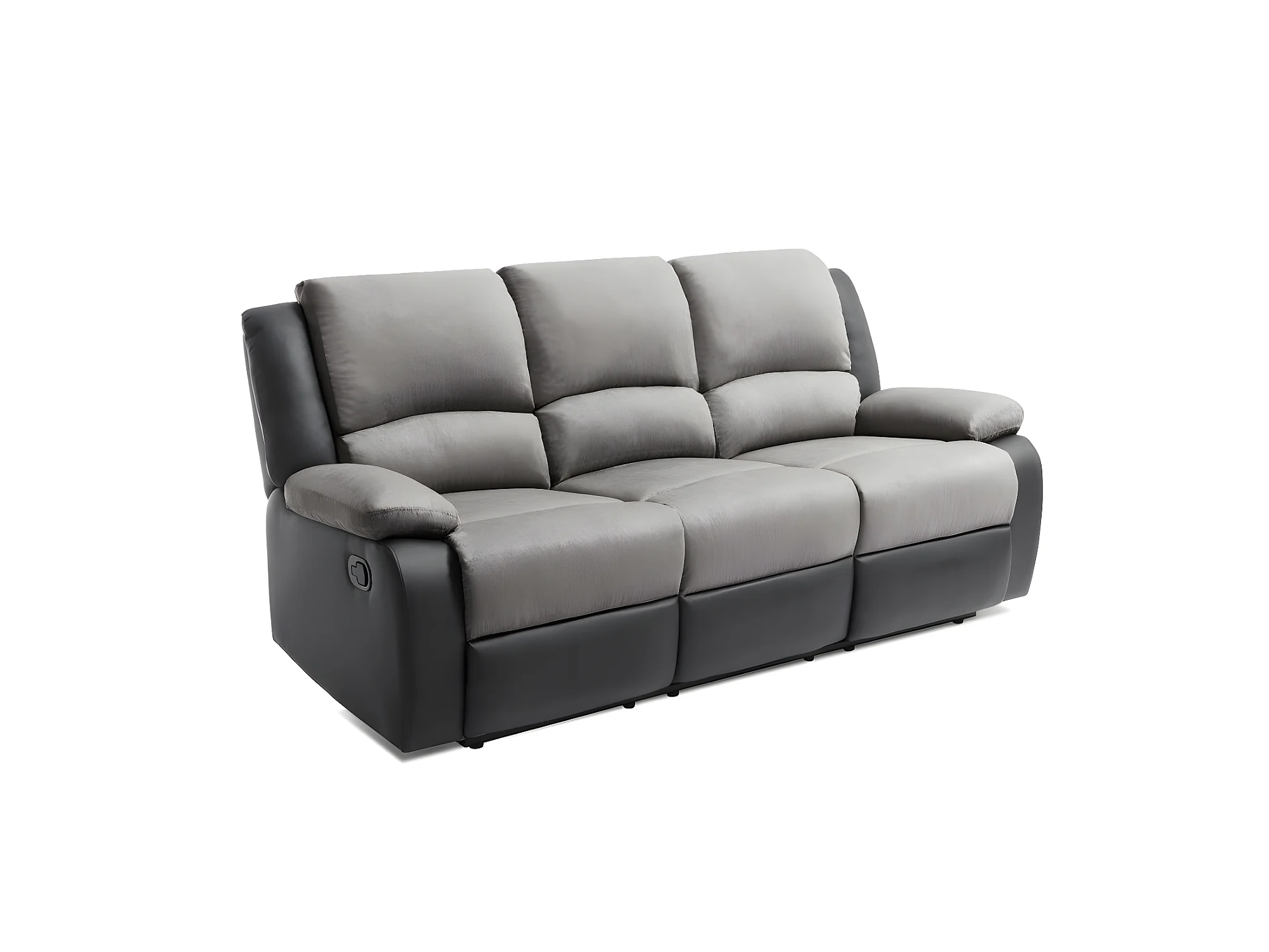 Canapé Relaxation 3 places Microfibre et Simili Léo - Gris et Noir - L193 x 93 x 96cm - Loungitude
