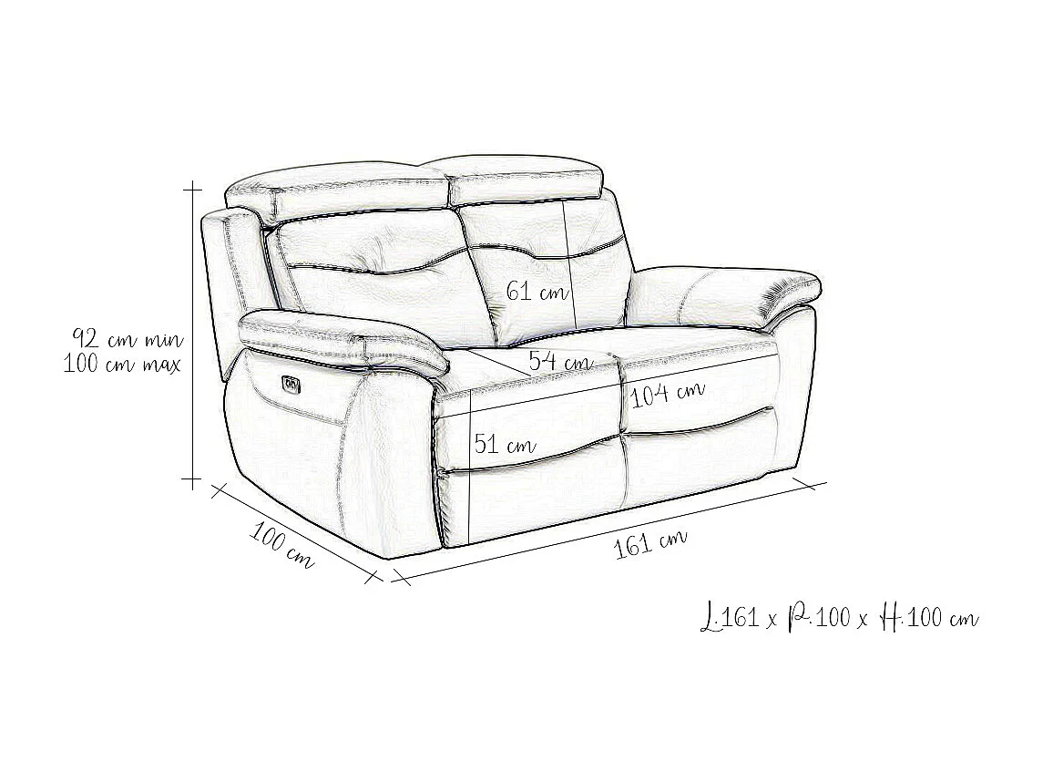 Canapé relaxation électrique 2 places en cuir SERENA - Gris perle