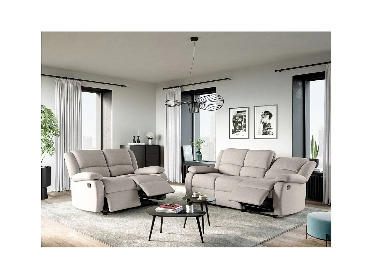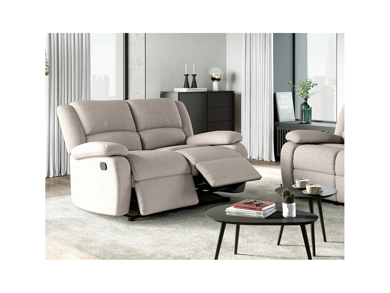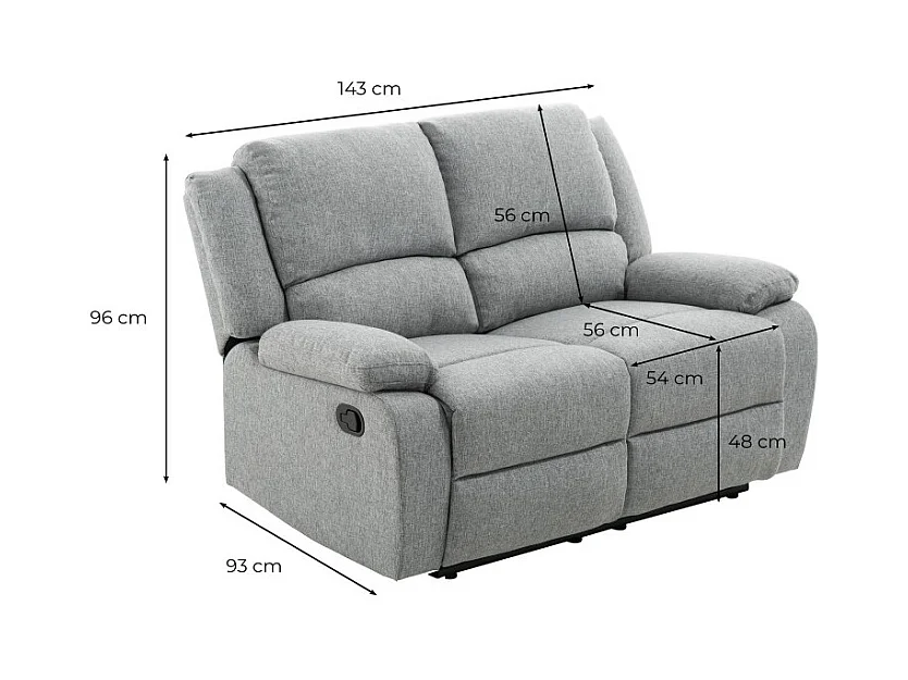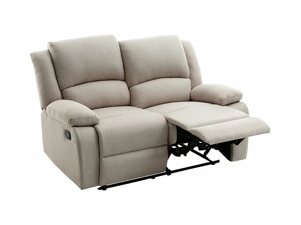 Canapé Relaxation manuel 2 places Léo en Tissu - Beige - L143 x P93 x H96cm - Loungitude