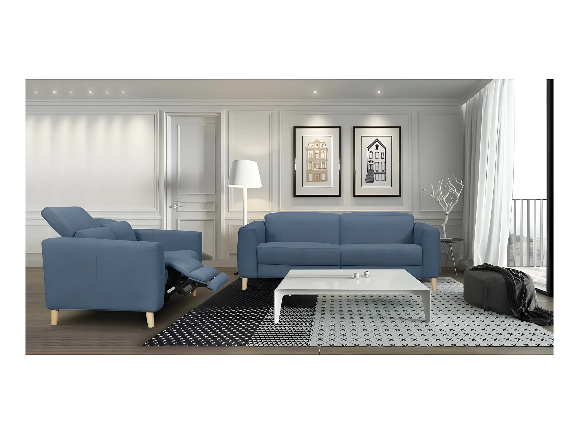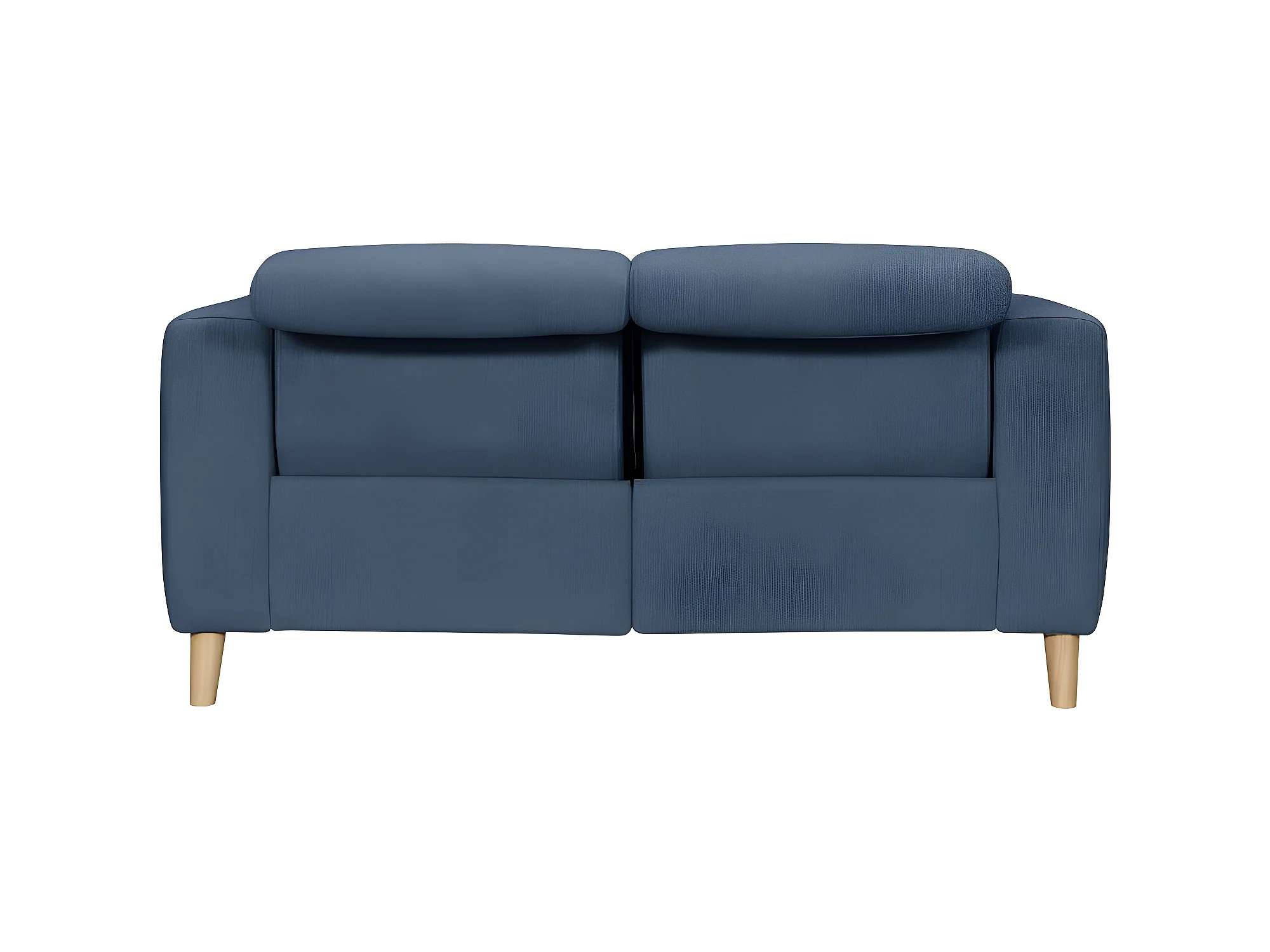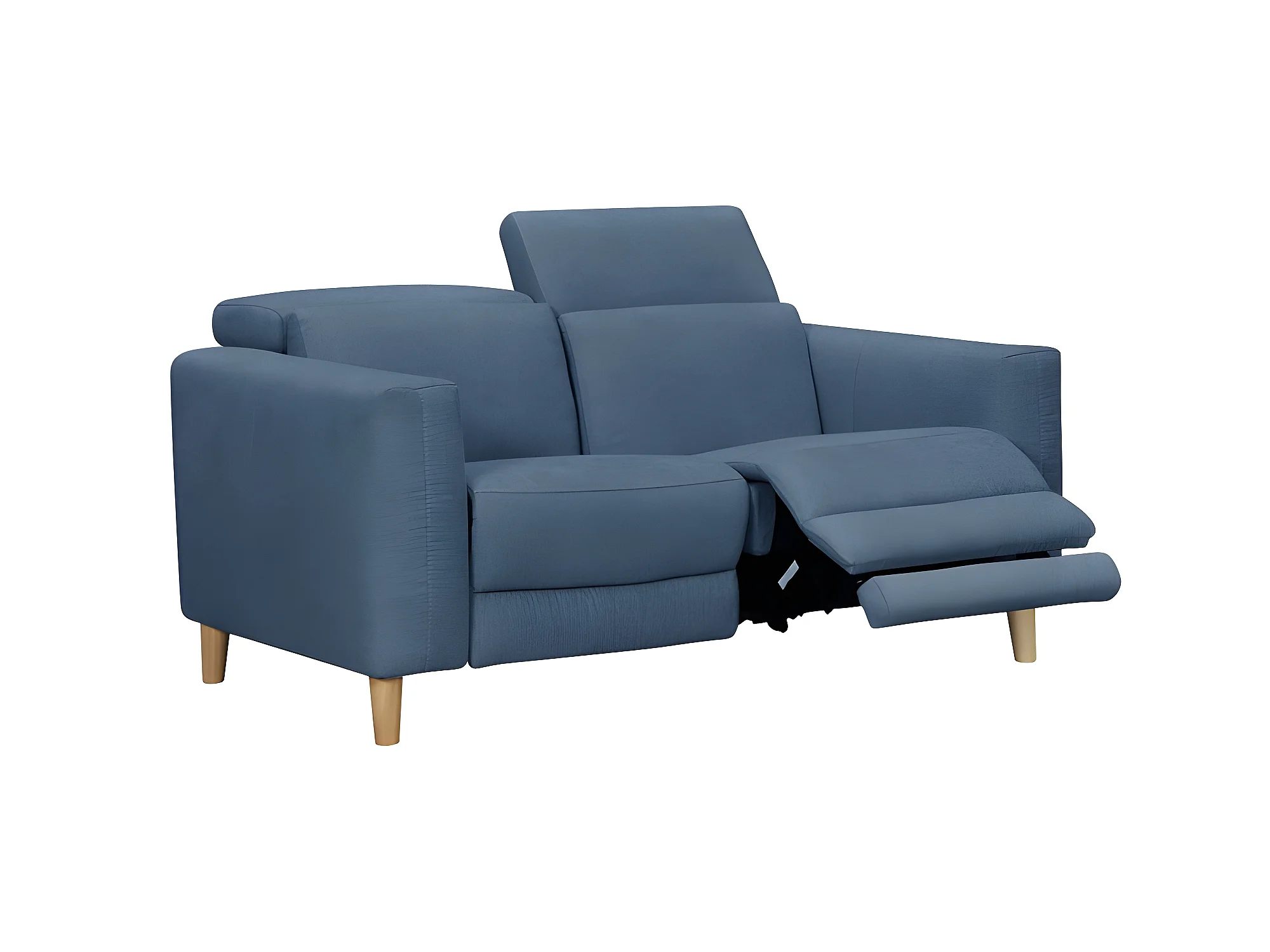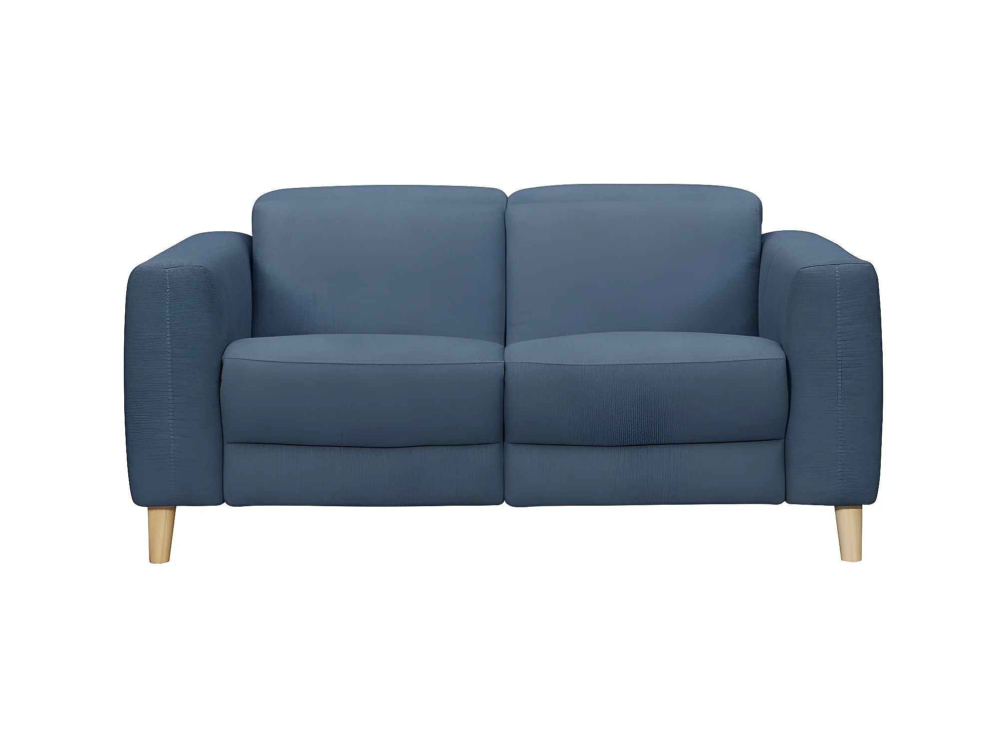 Canapé relaxation 2 places en tissu bleu et pieds bois - POLO