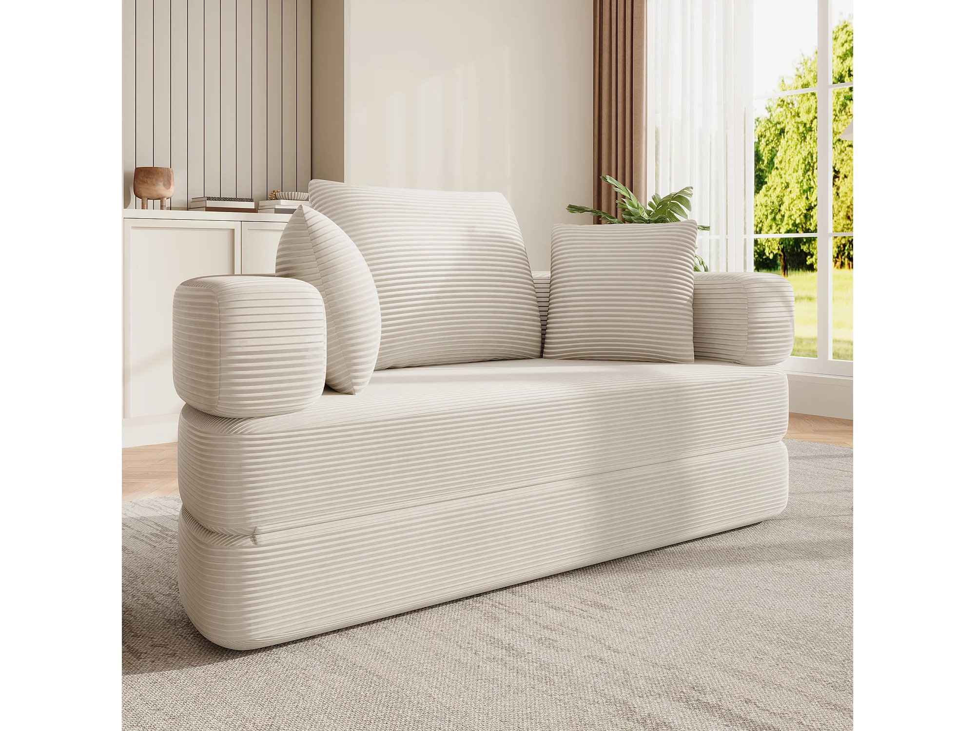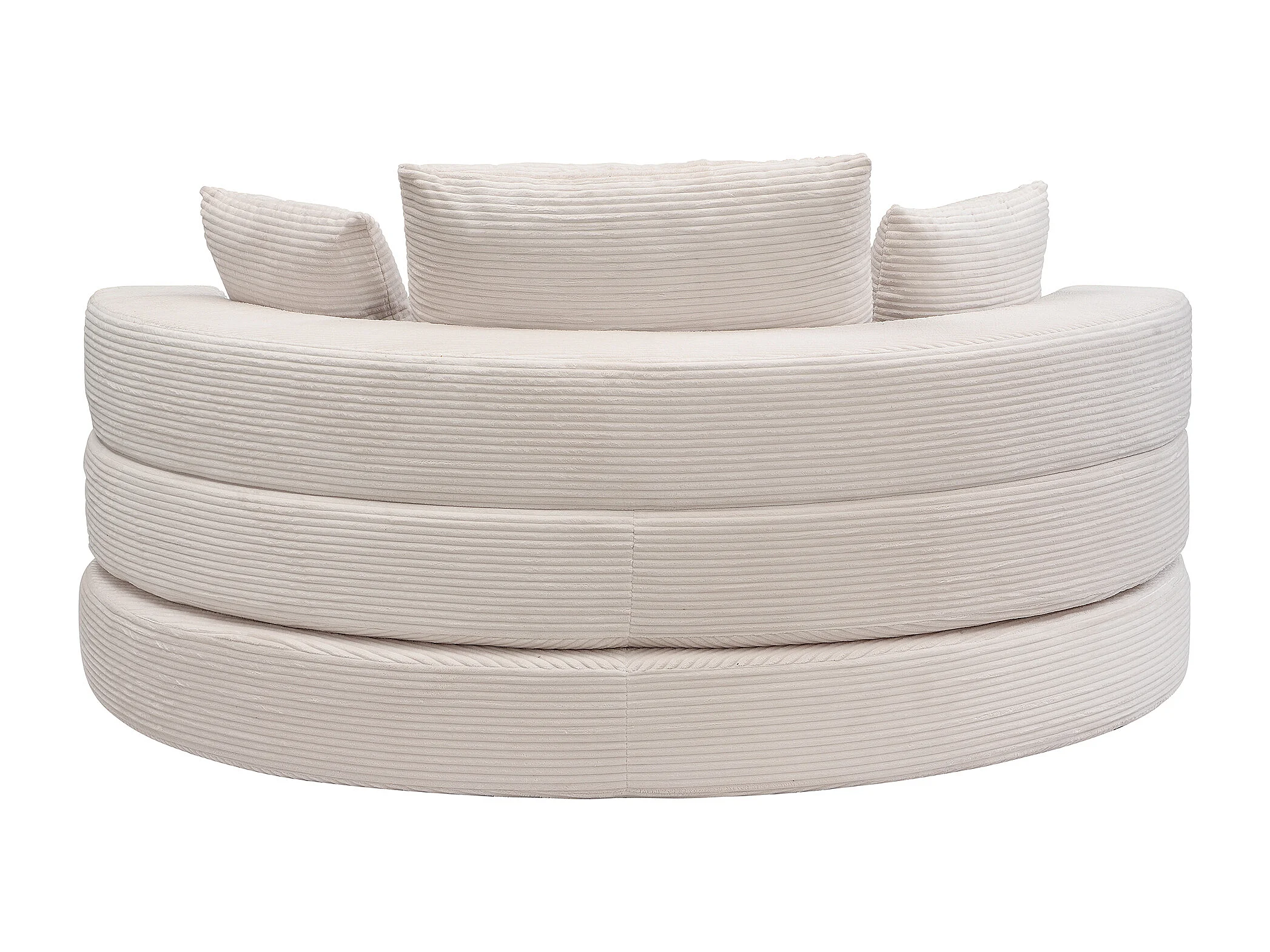 Canapé rond pliable 173x176x40cm - avec coussin - tissu en velours côtelé - beige