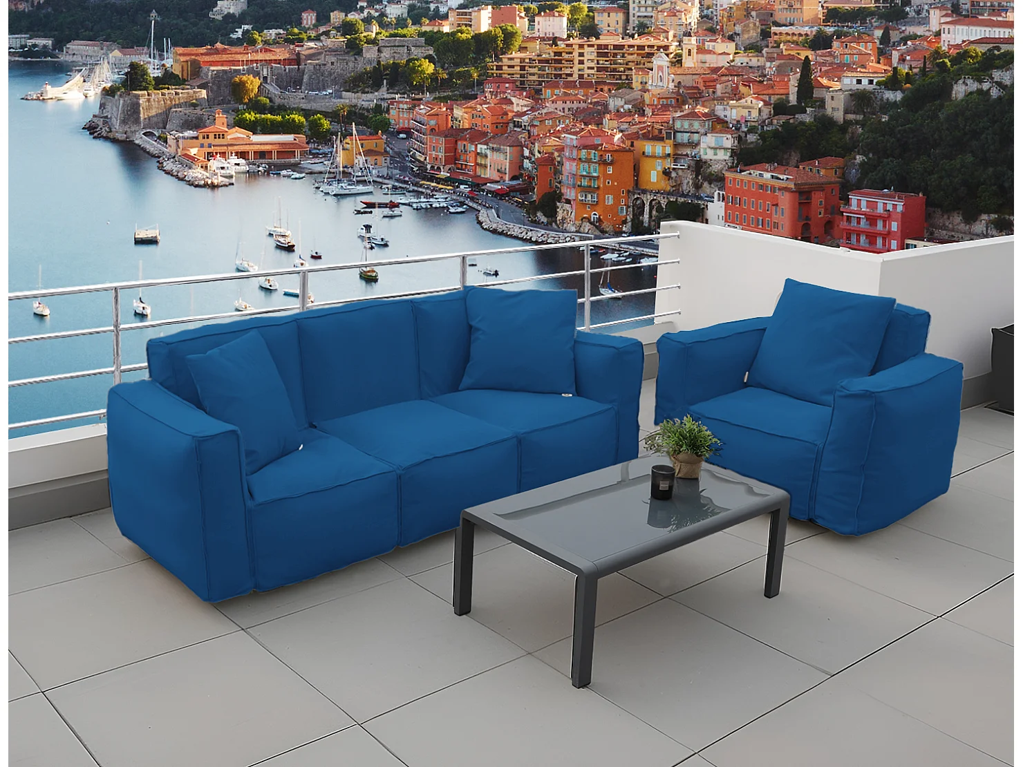 Canapé salon de jardin modulable 90x75x65cm Bleu