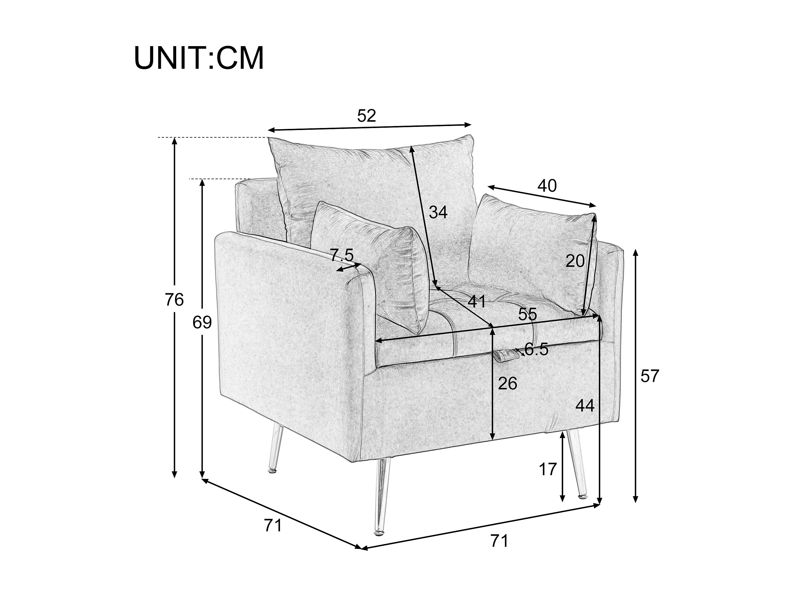 Canapé simple en velours beige avec accoudoirs et rangements, pieds en métal - pour salon et chambre