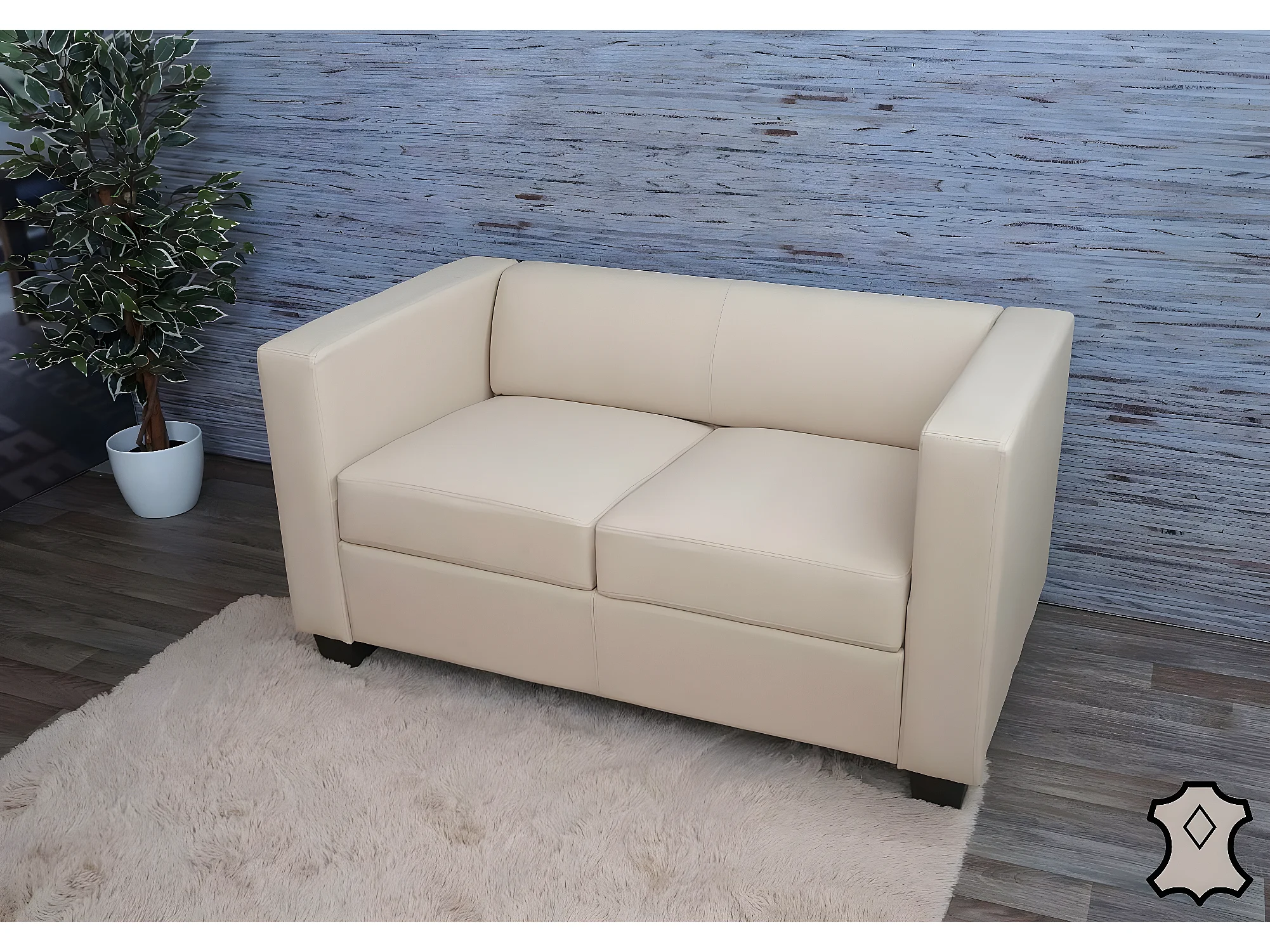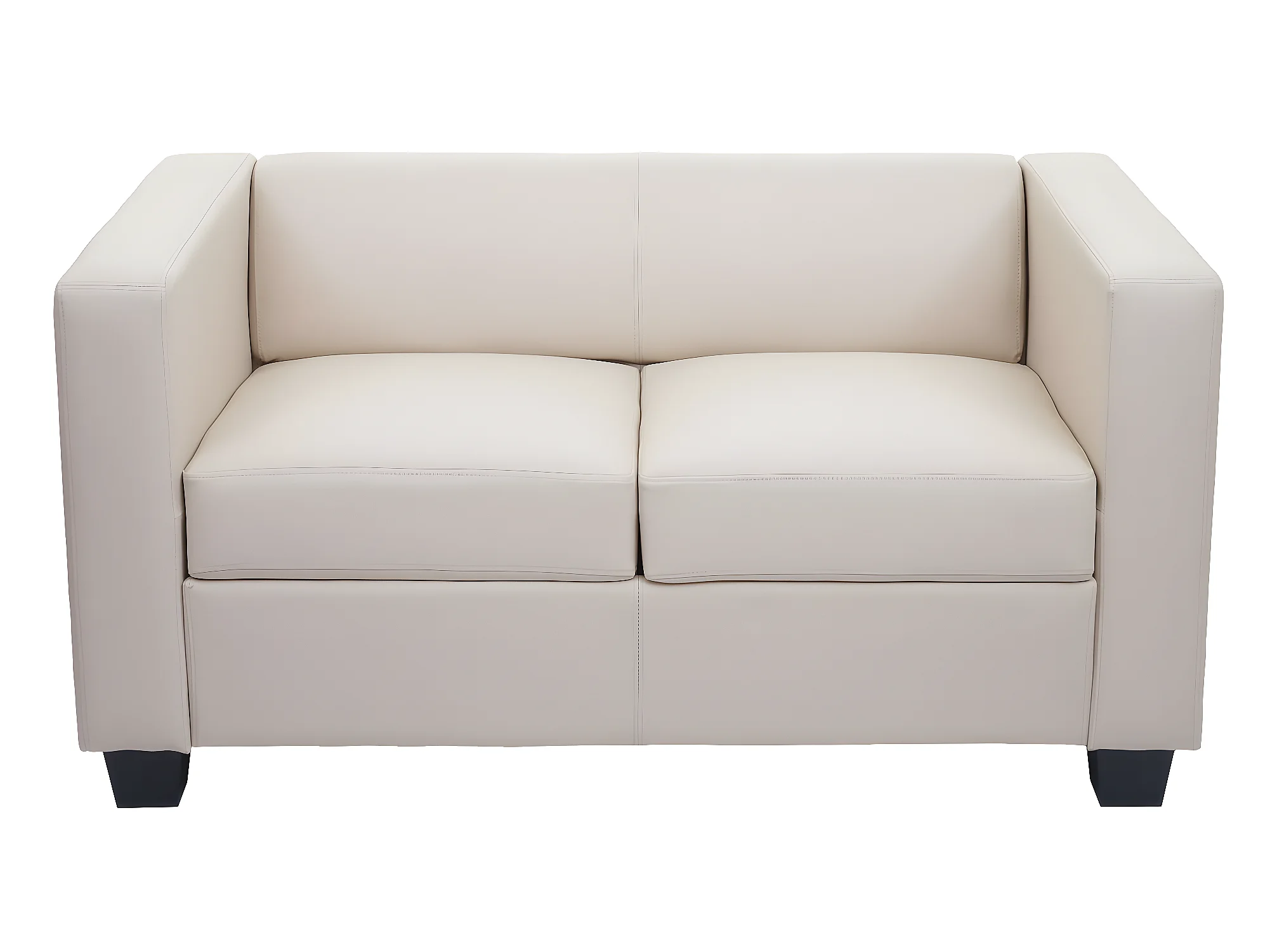 Canapé / sofa Lille, 2 places, 137x75x70cm, cuir reconstitué, crème