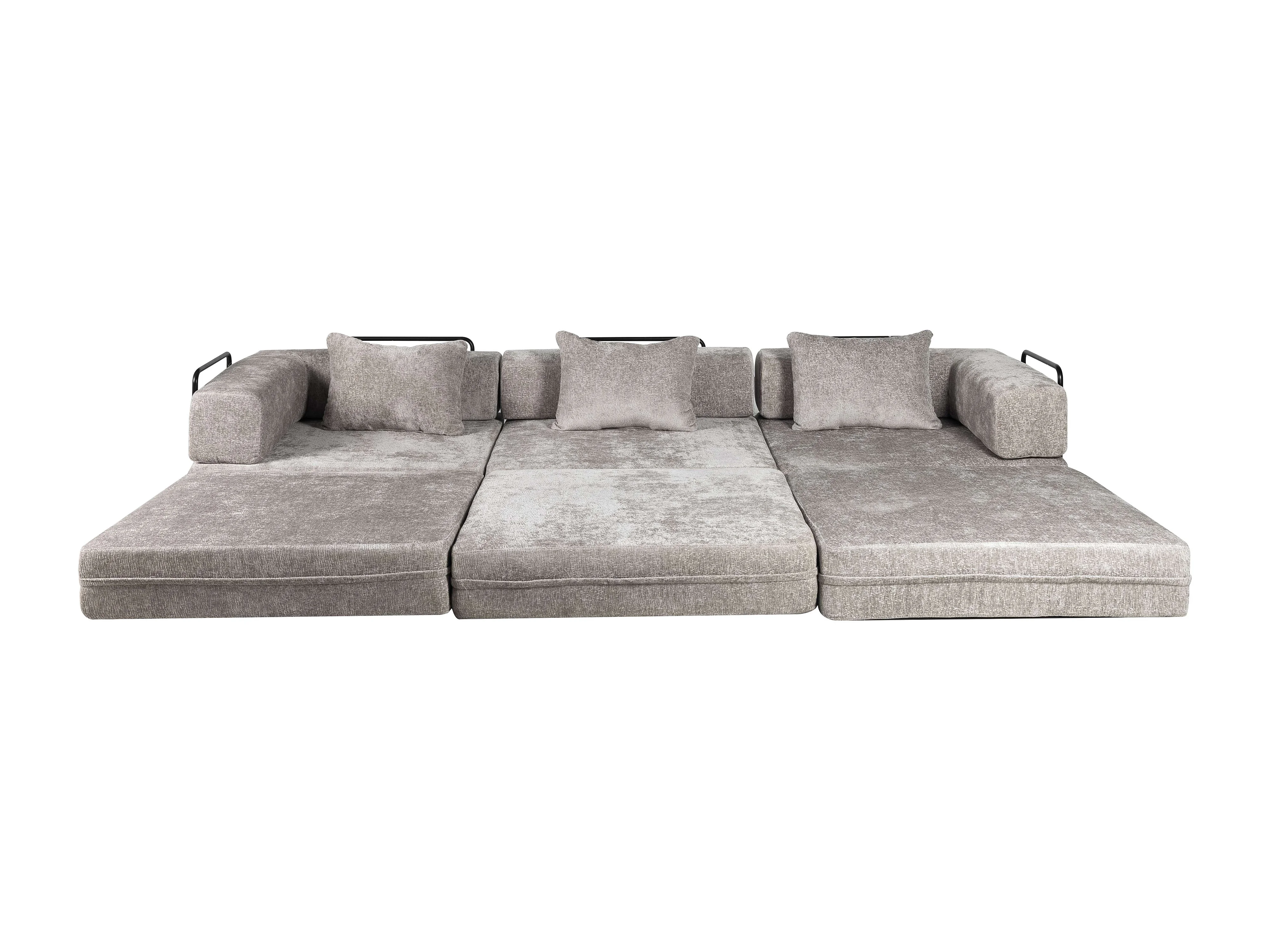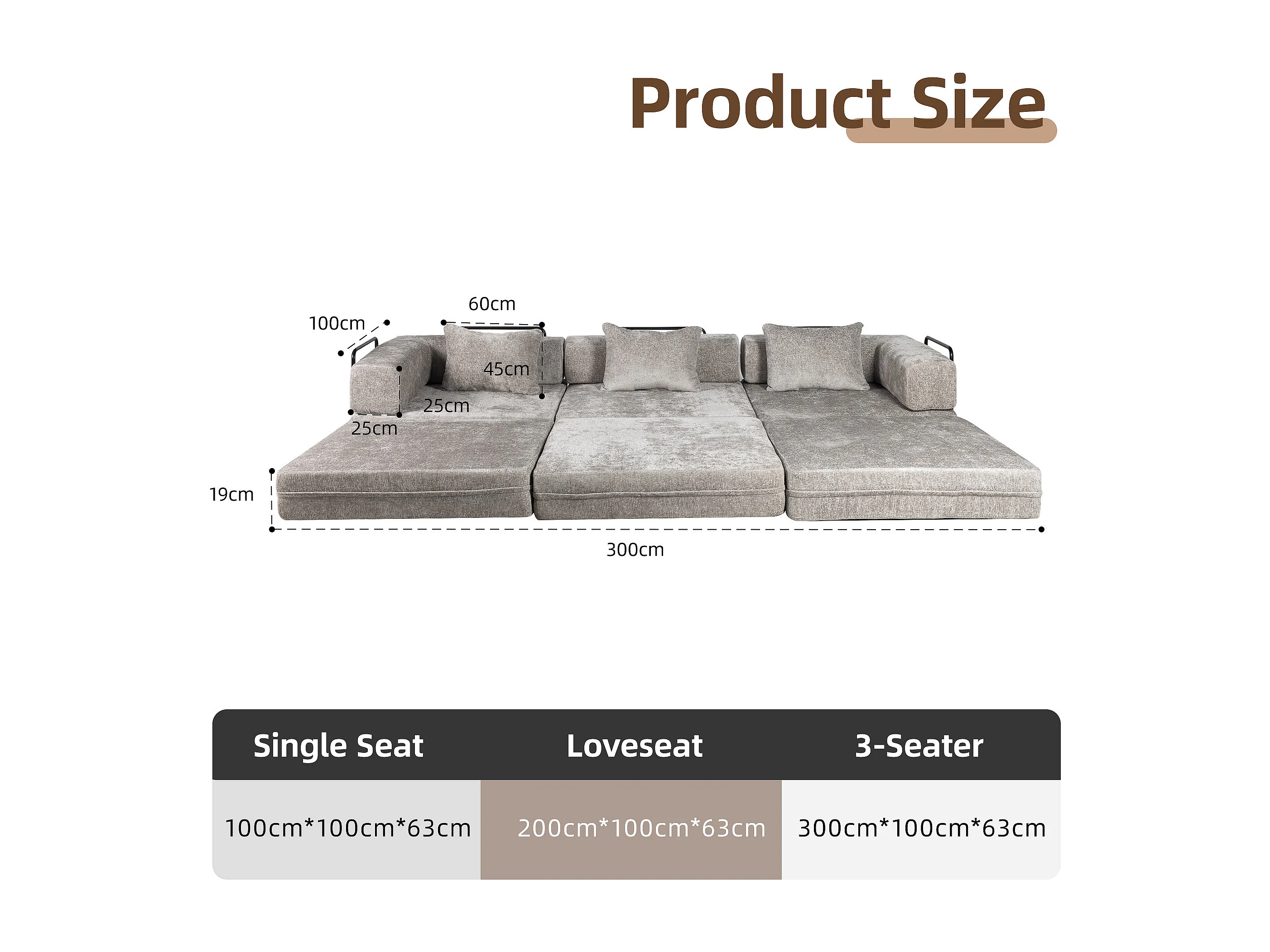 Canapé trois places, canapé-lit modulable convertible, revêtement en chenille, aucun assemblage requis, gris clair