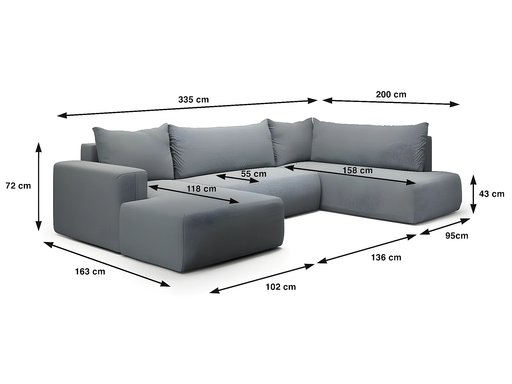 Canapé U 5 places convertible coffre Bliss Gris
