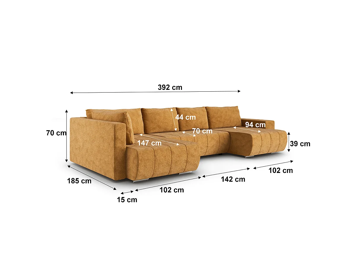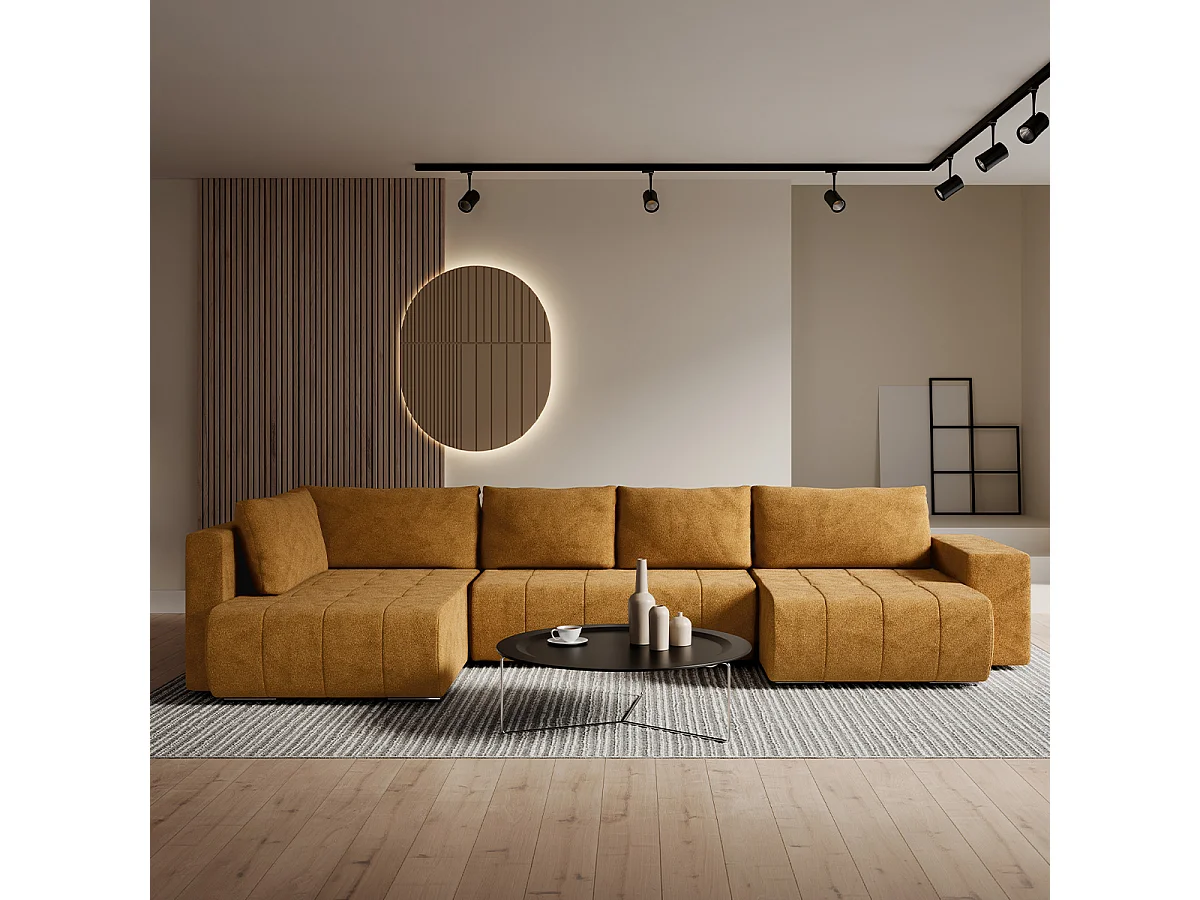 Canapé U 5 places convertible coffre Sergio Moutarde