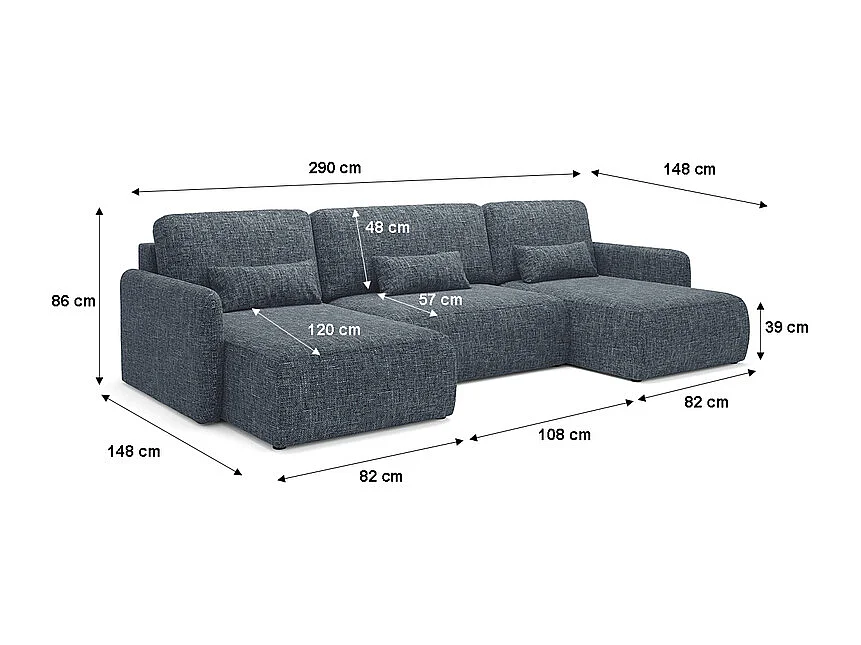 Canapé U convertible 4 places avec coffre Lazare Bleu