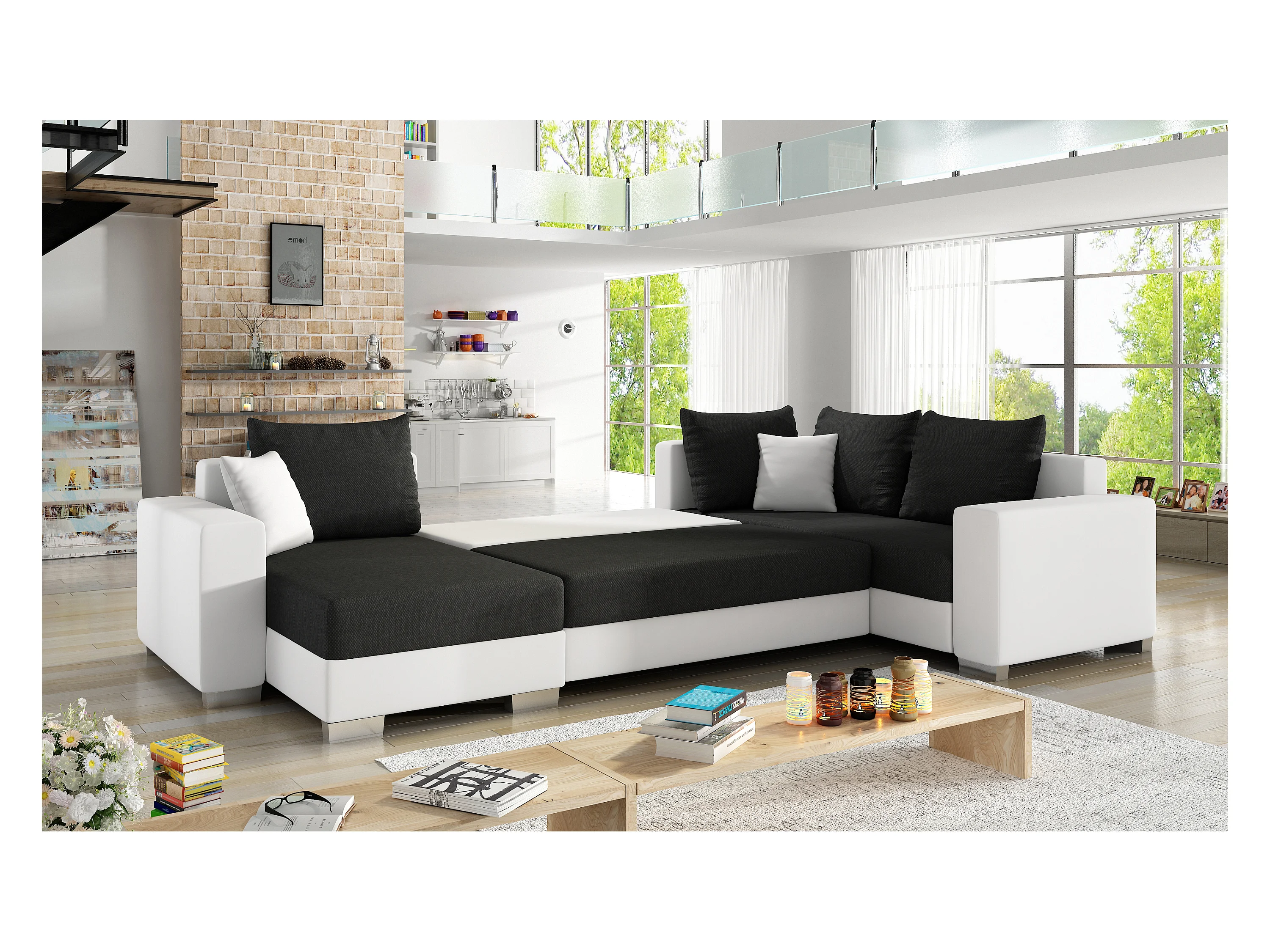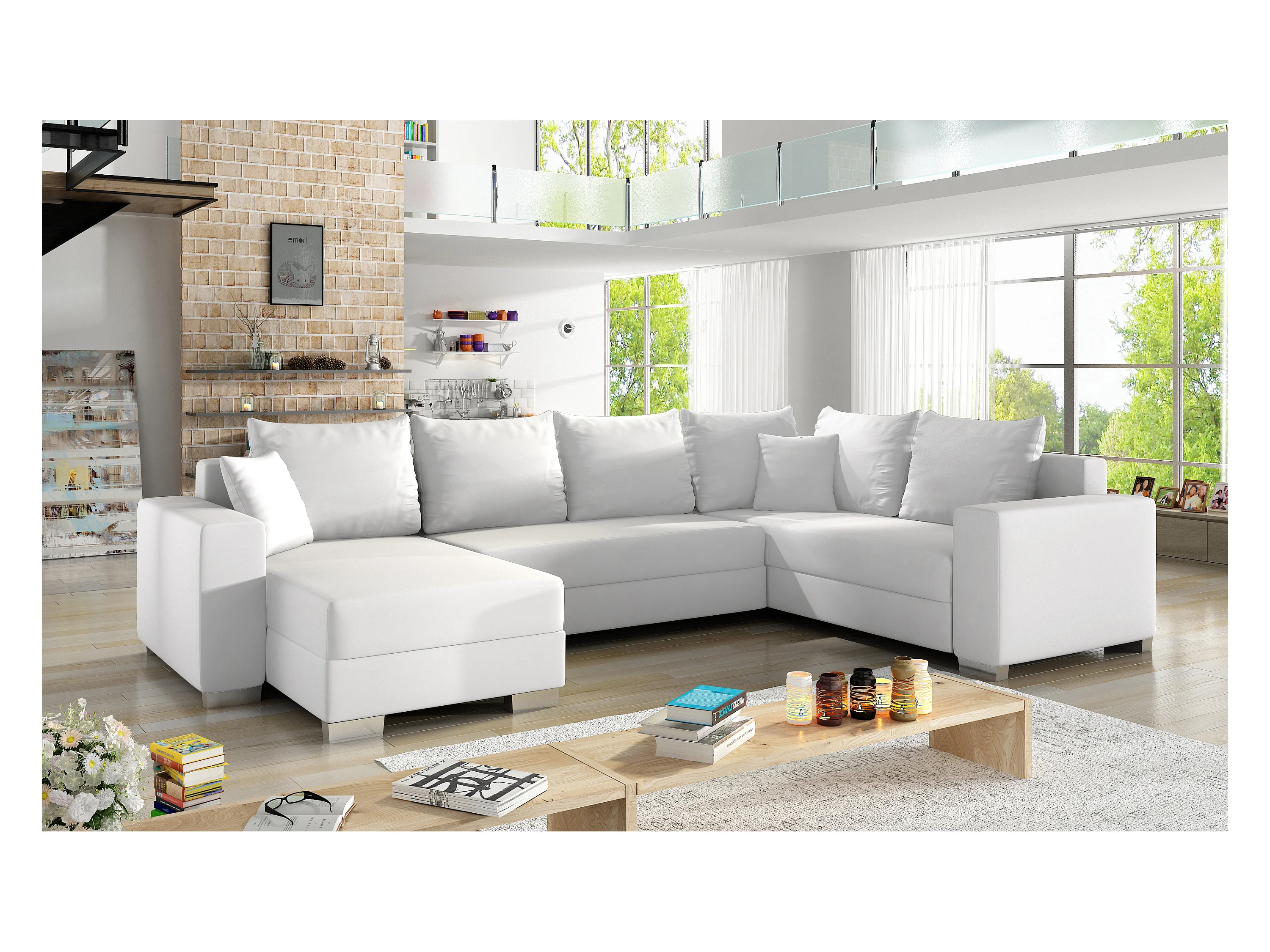 Canapé U convertible simili blanc coffre de rangement à gauche Marry 321cm