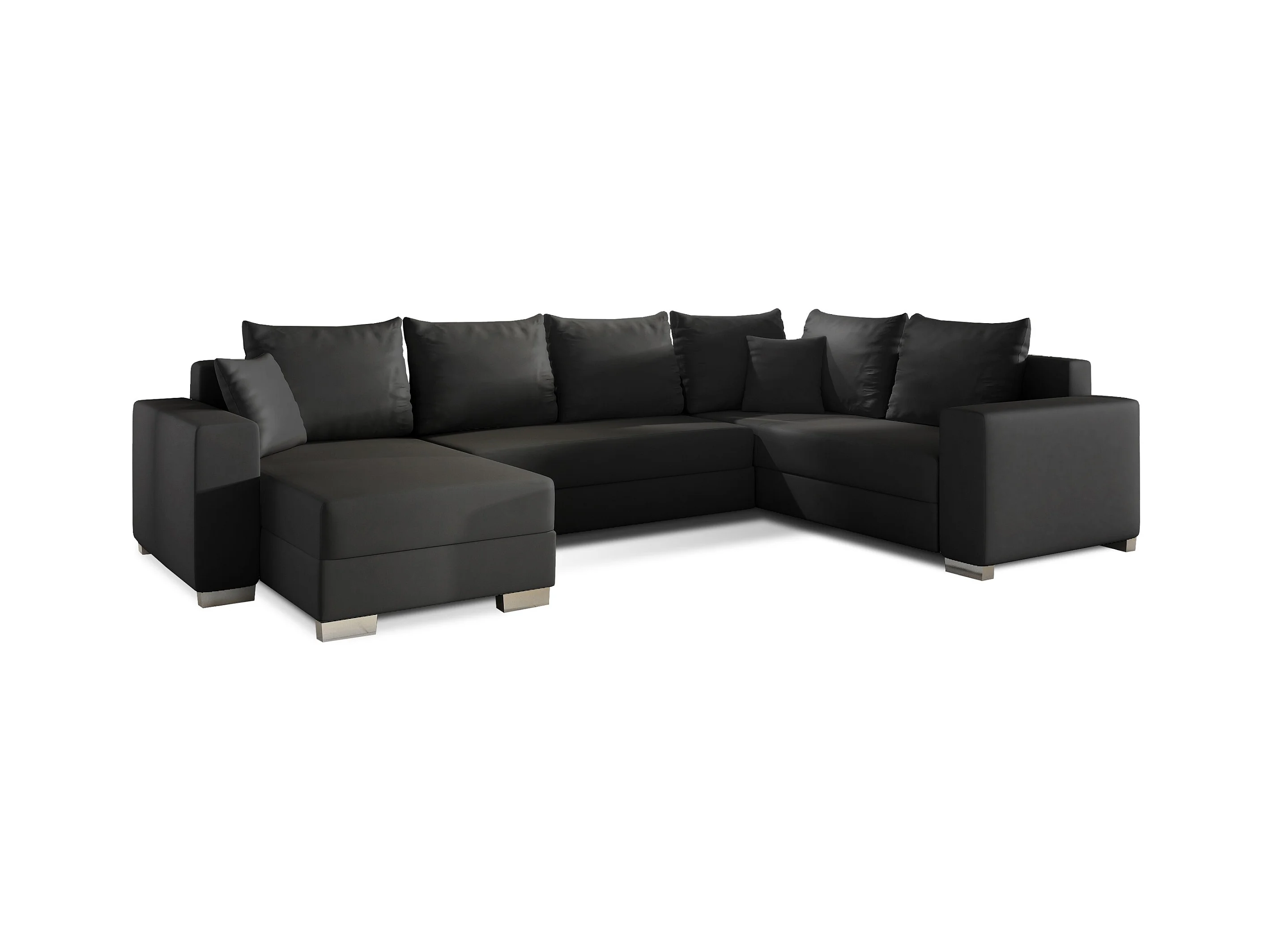 Canapé U convertible simili noir coffre de rangement à gauche Marry 321cm