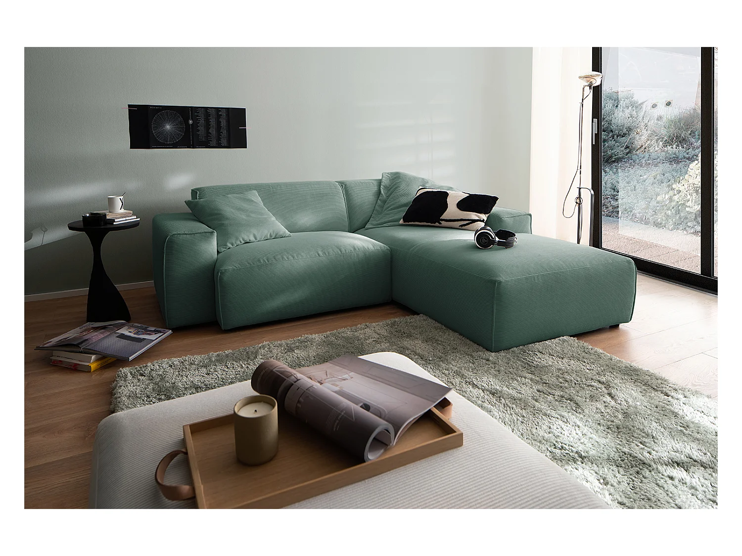 Canapé - vert émeraude Velours côtelé - RANI