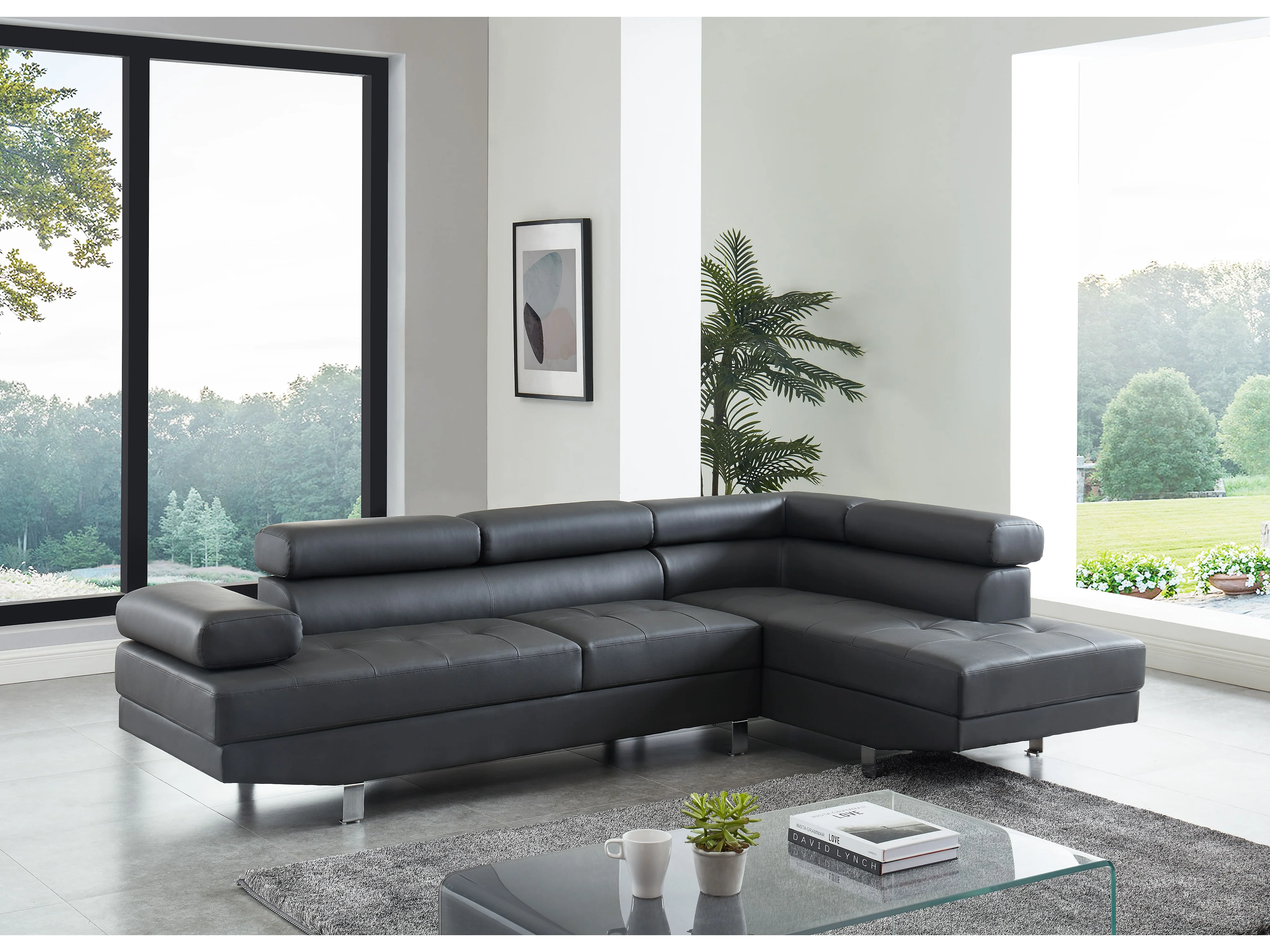 Canapé VICTOR en PU gris avec angle à droite et fixe