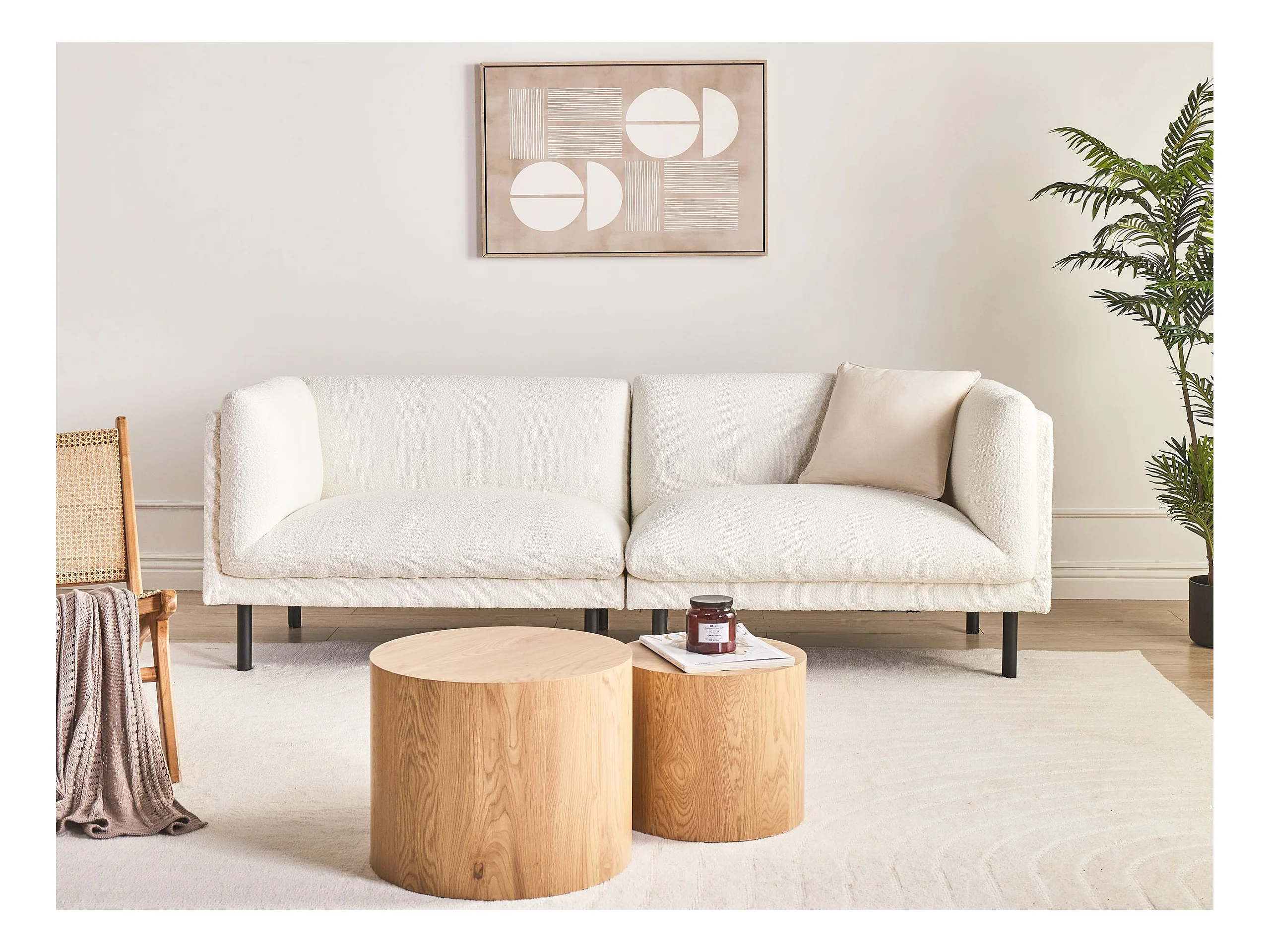 Canapé 3 places VORGOD Bouclé Blanc cassé