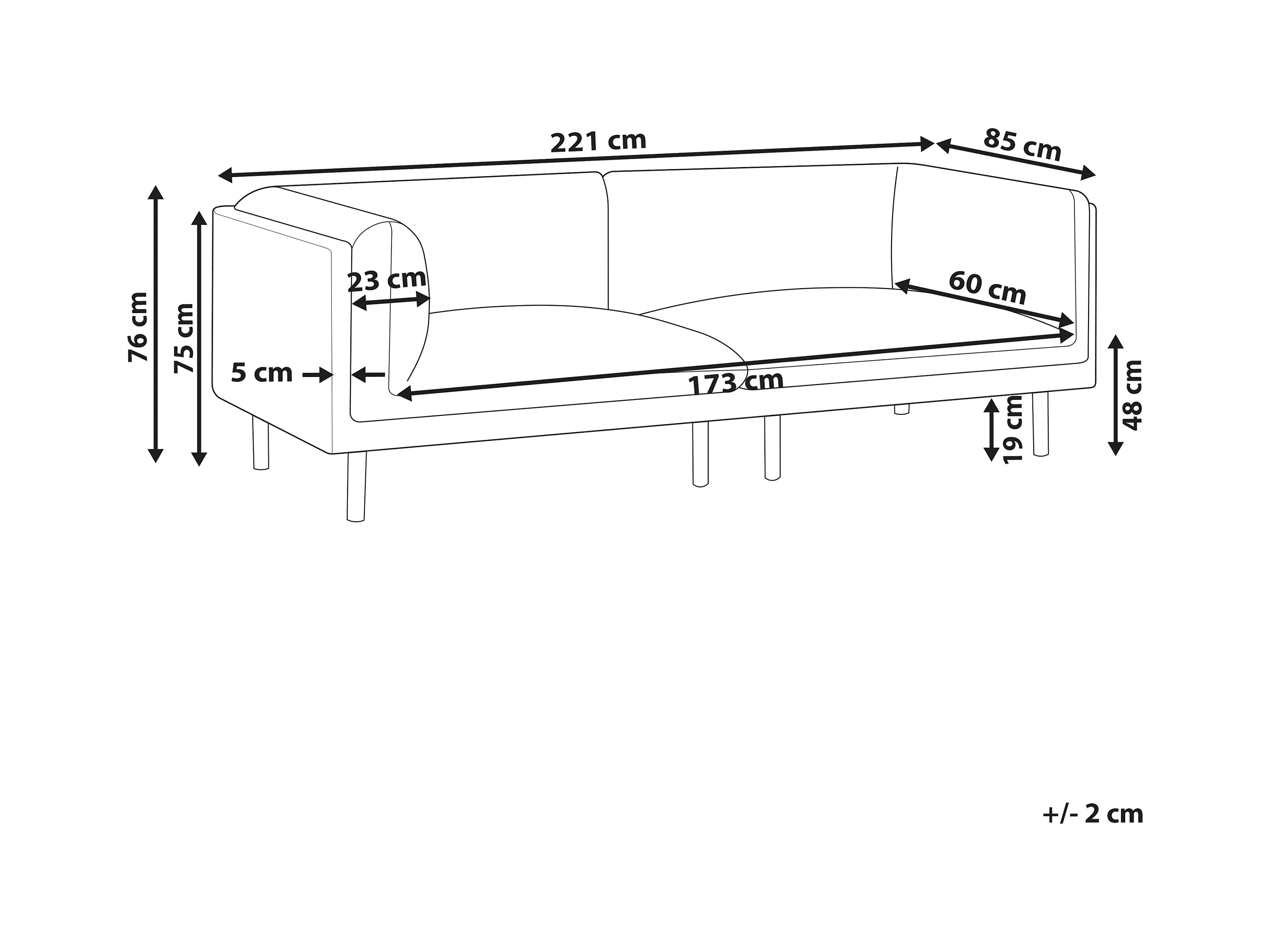 Canapé 3 places VORGOD Tissu Noir