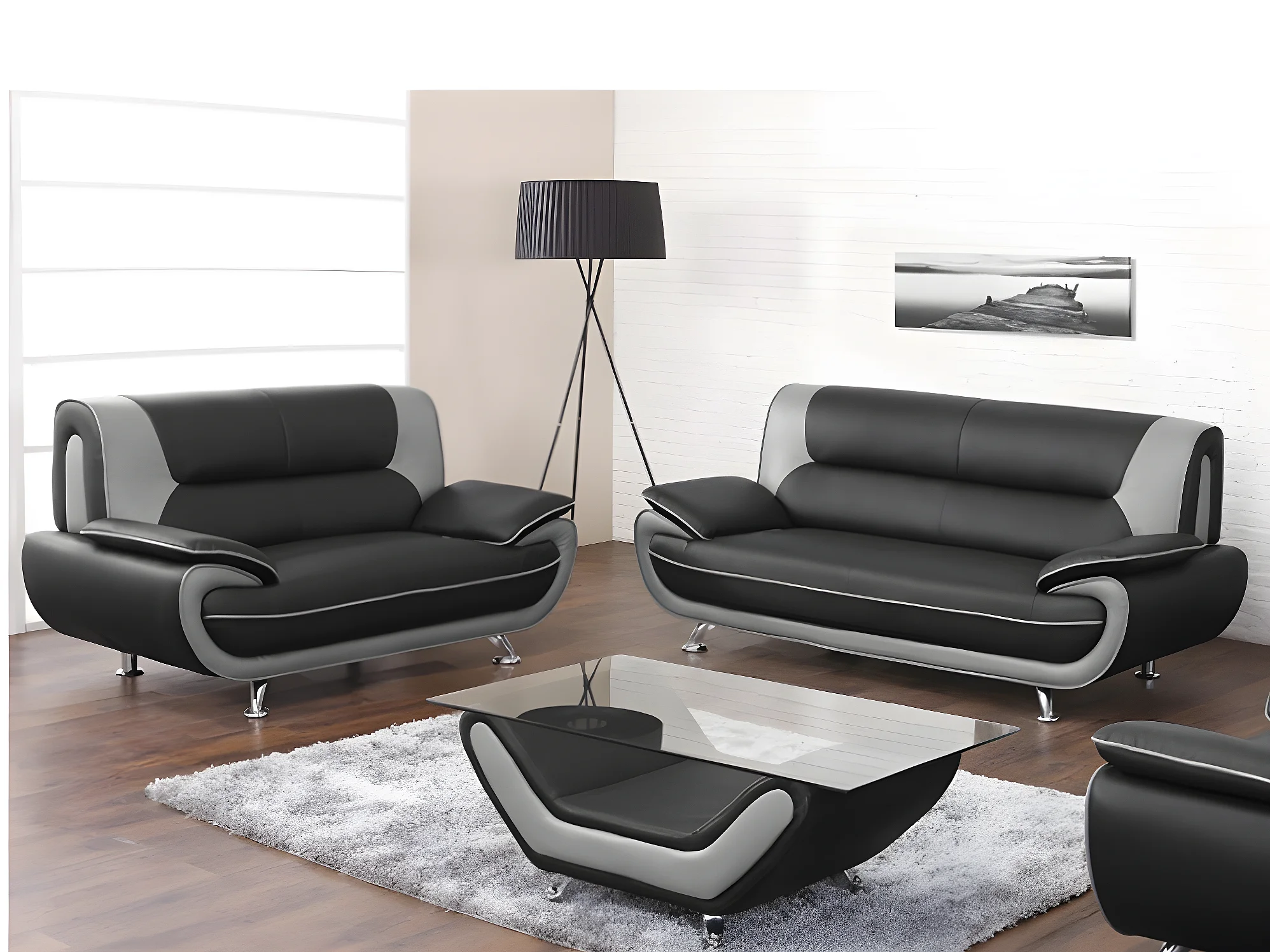 Canapés 3 places et 2 places en simili NIGEL - Bicolore noir et gris