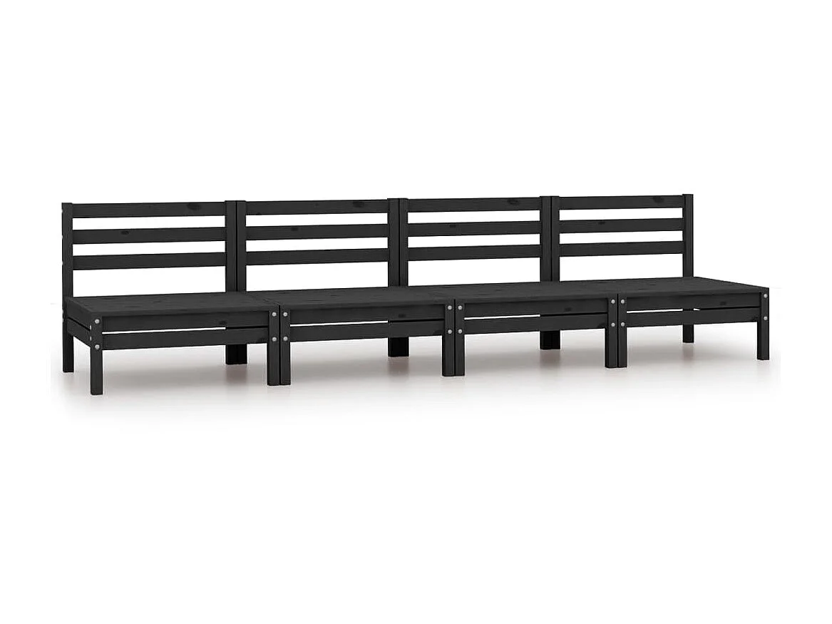Canapés centraux de jardin 4 pcs Noir Bois de pin massif