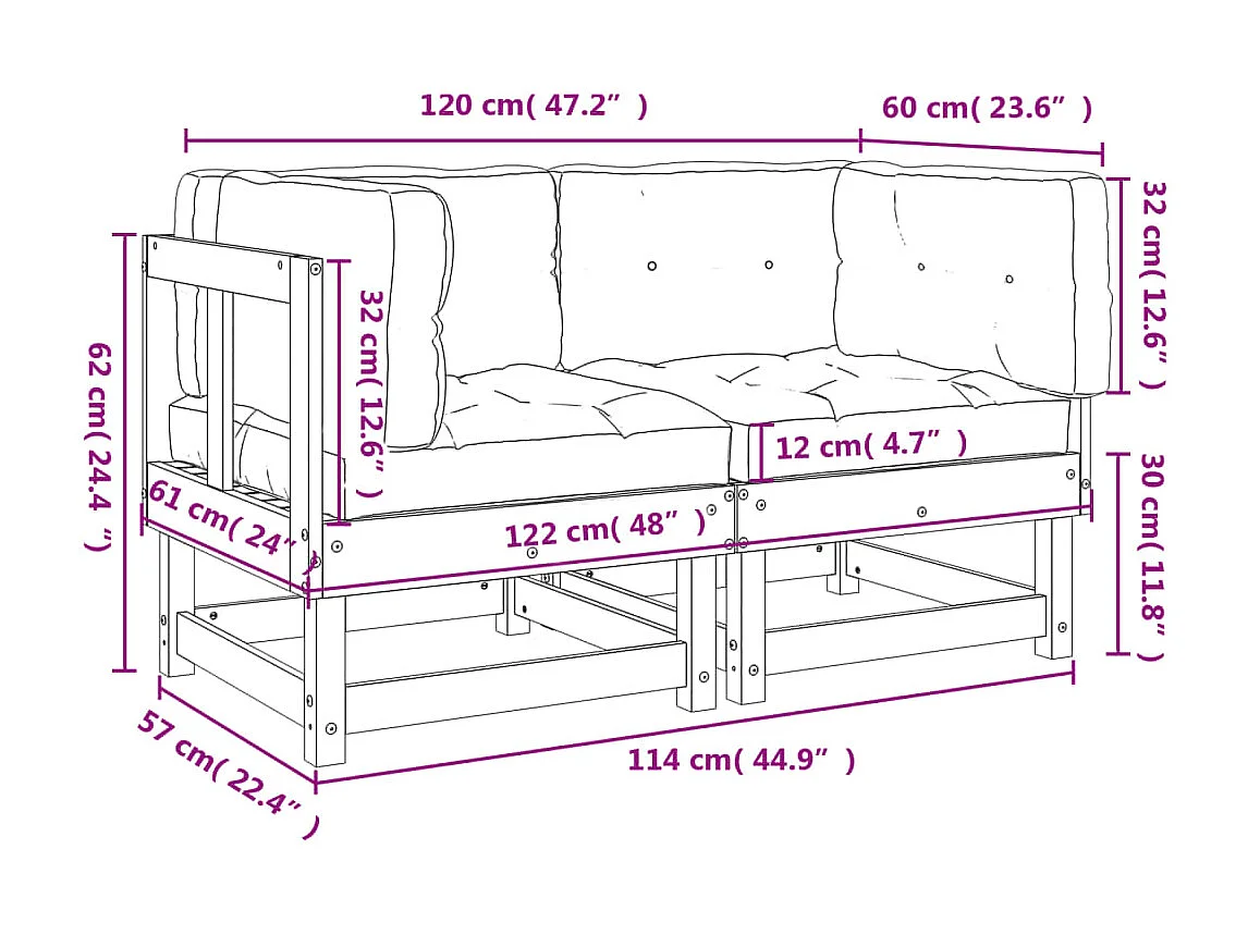 Canapés d'angle avec coussins 2 pcs bois de pin imprégné