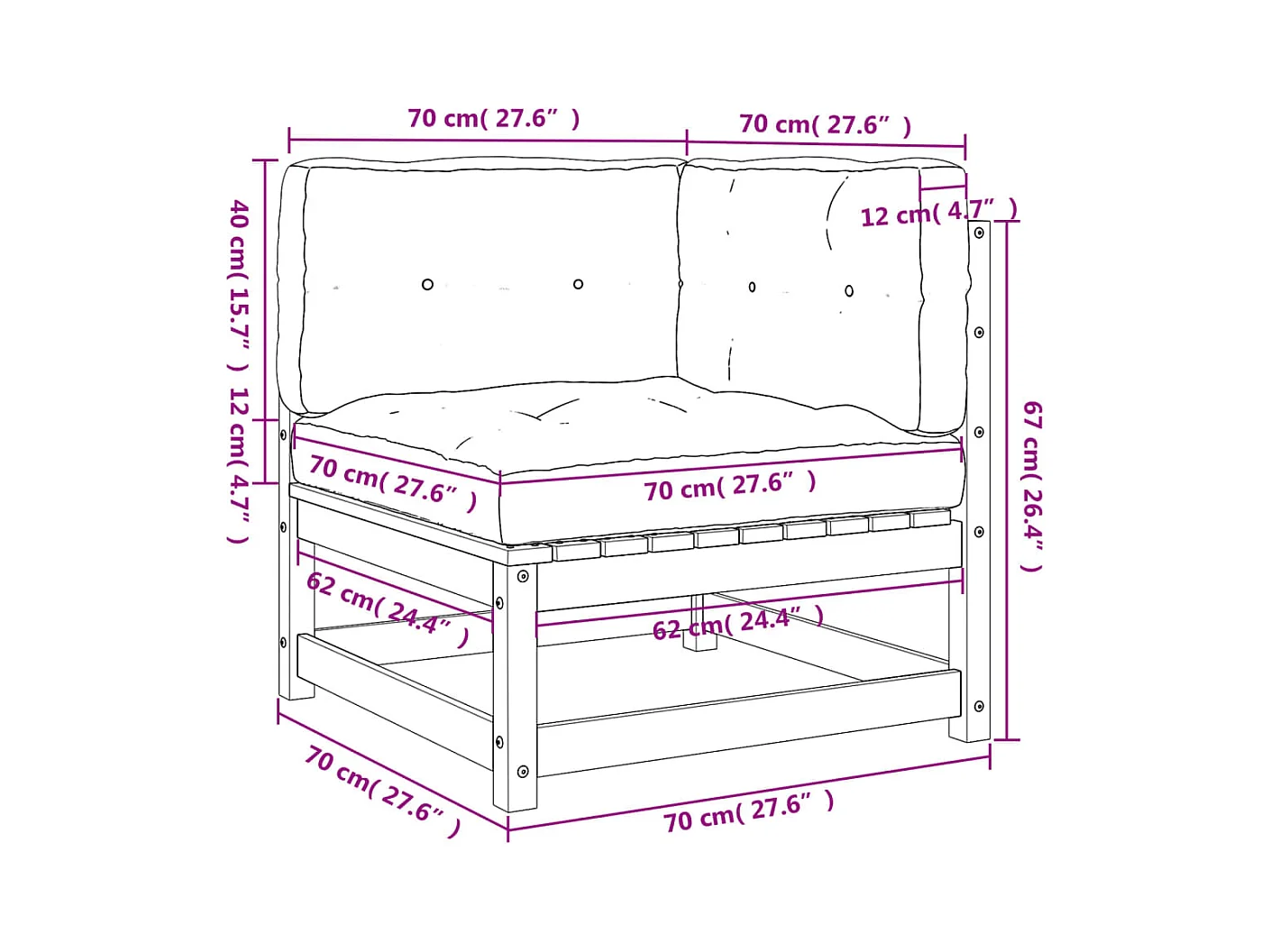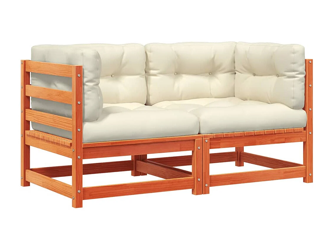 Canapés d'angle de jardin coussins 2 pcs cire marron pin massif