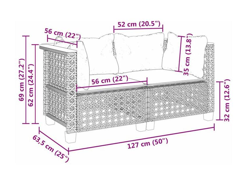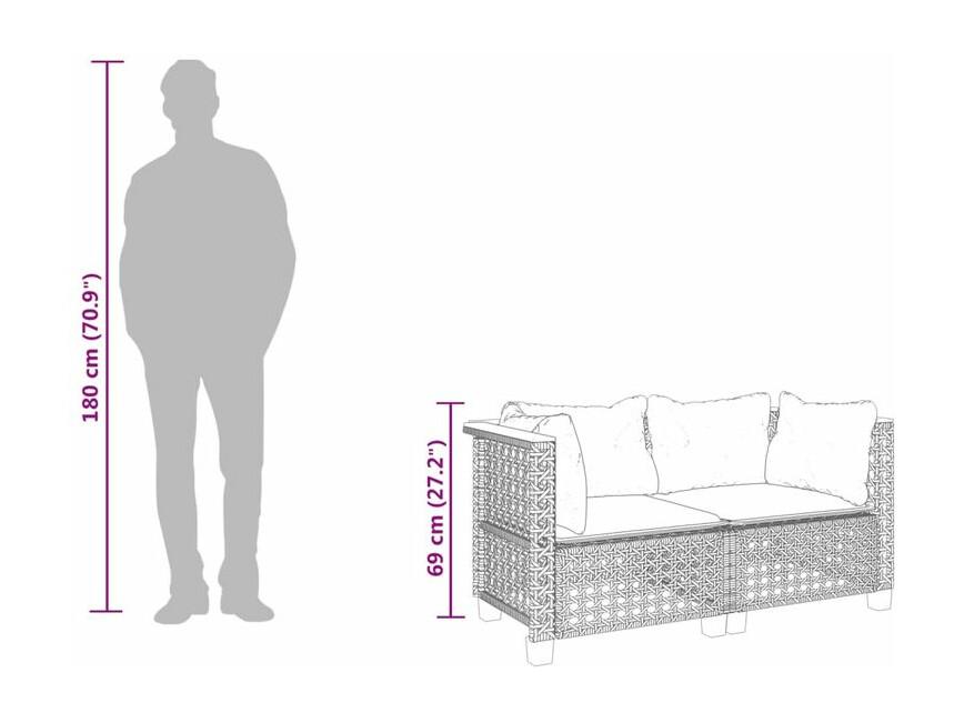 Canapés d'angle de jardin et coussins 2 pcs gris résine tressée