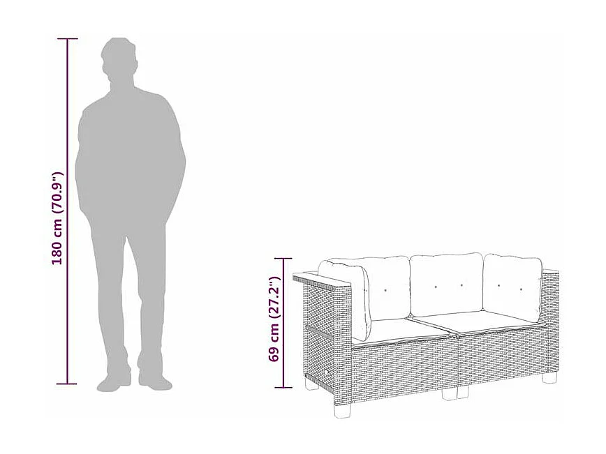 Canapés d'angle de jardin et coussins 2 pcs noir résine tressée