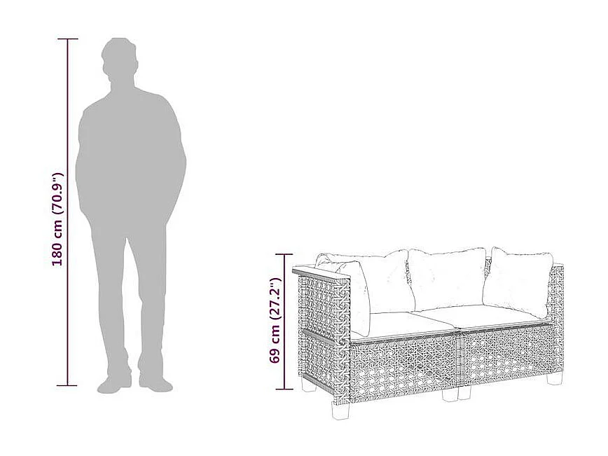 Canapés d'angle de jardin et coussins 2pcs beige résine tressée
