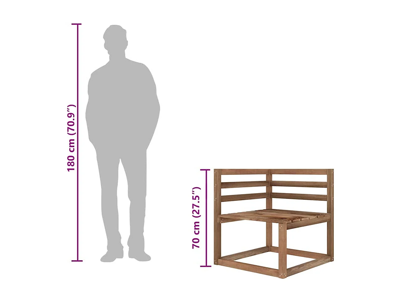 Canapés d'angle palette de jardin 2 pcs Marron Pin imprégné