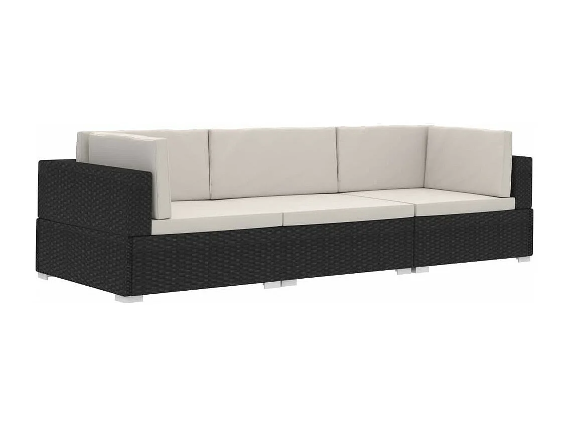 Canapés de jardin 3 pcs avec coussins Résine tressée Noir