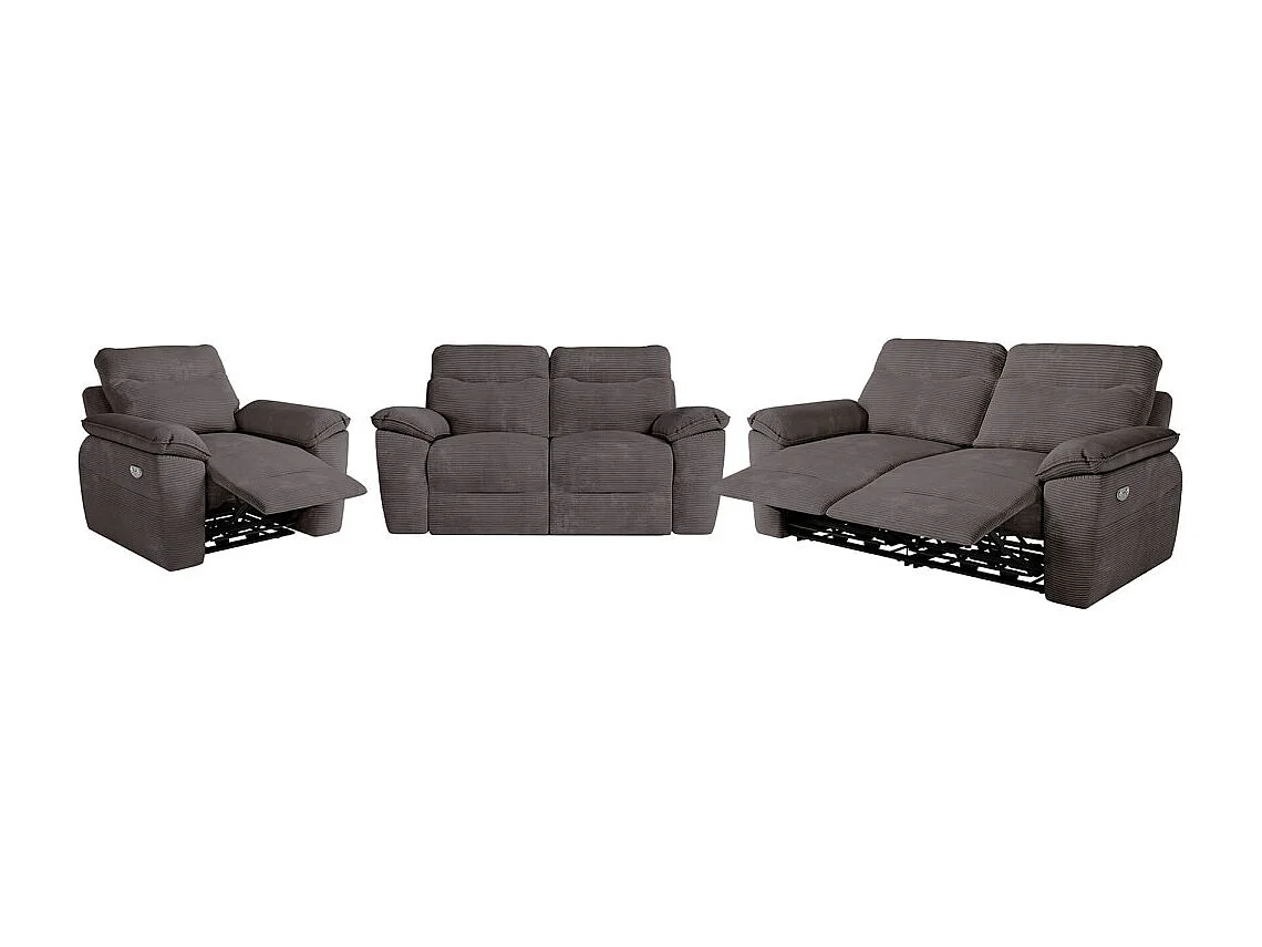 Canapés de relaxation ROSS électriques 3 et 2 places et fauteuil en velours côtelé - Gris