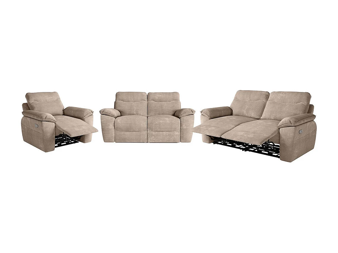 Canapés de relaxation ROSS électriques 3 et 2 places et fauteuil en velours côtelé - Taupe