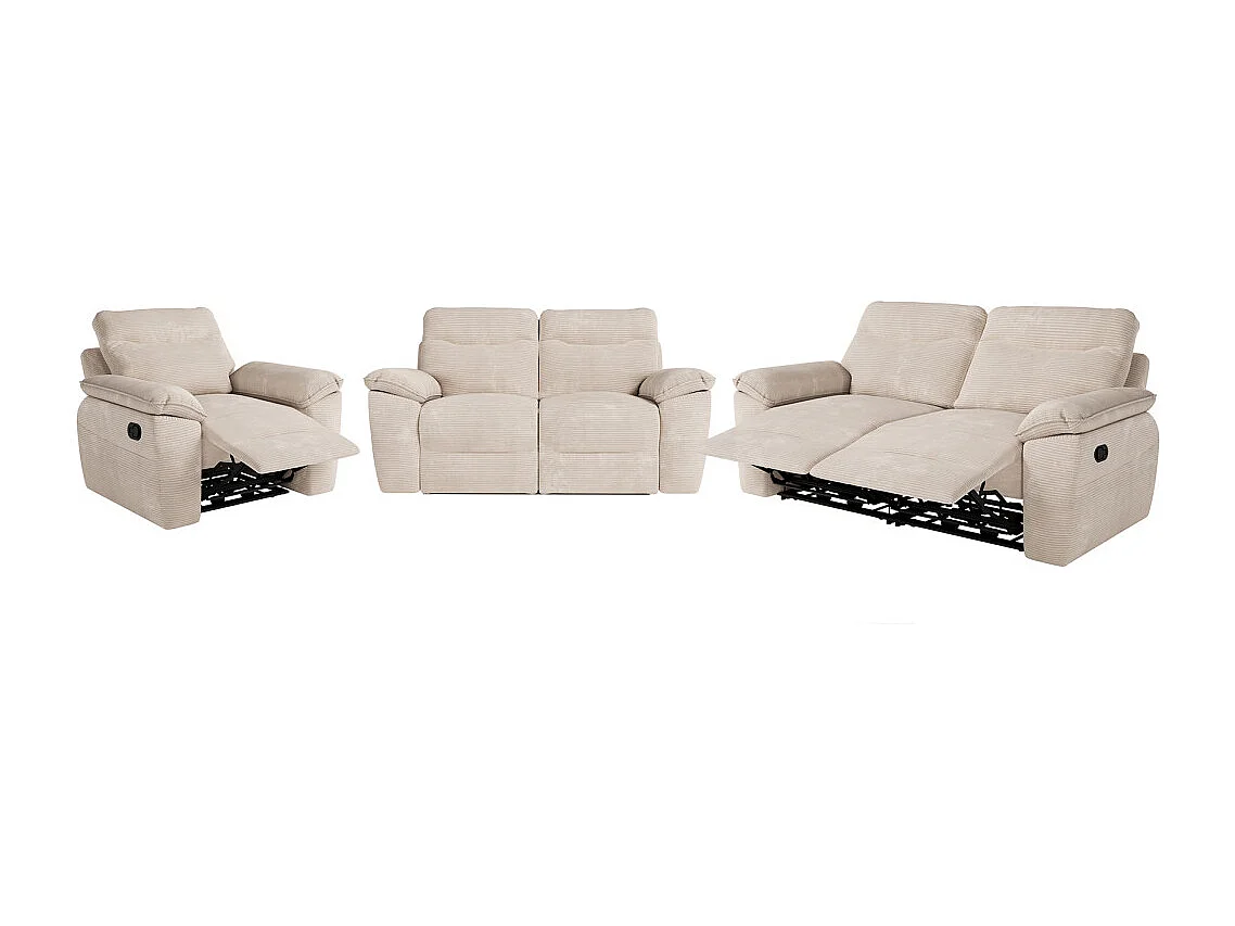 Canapés de relaxation ROSS manuels 3 et 2 places et fauteuil en velours côtelé - Beige